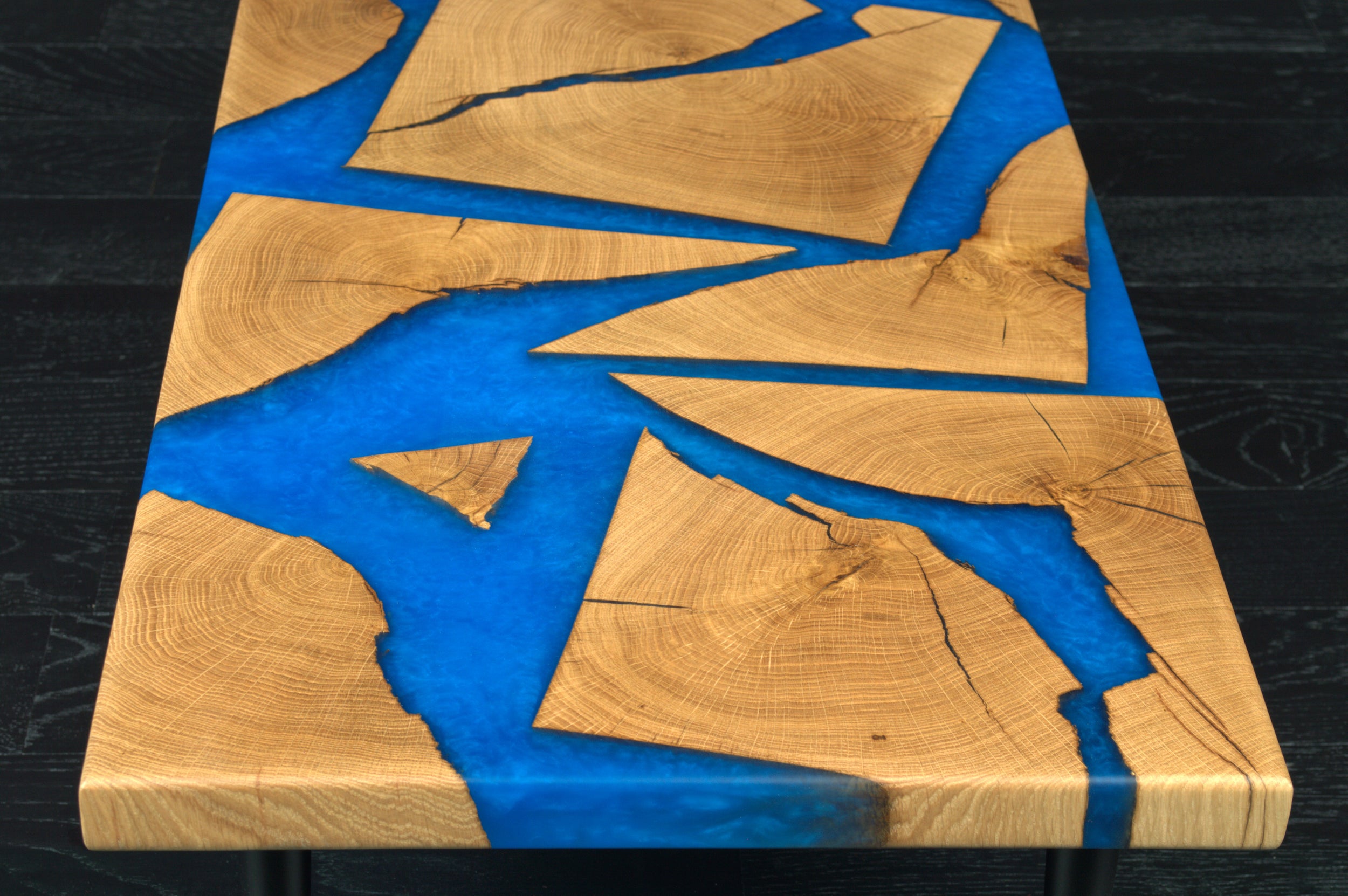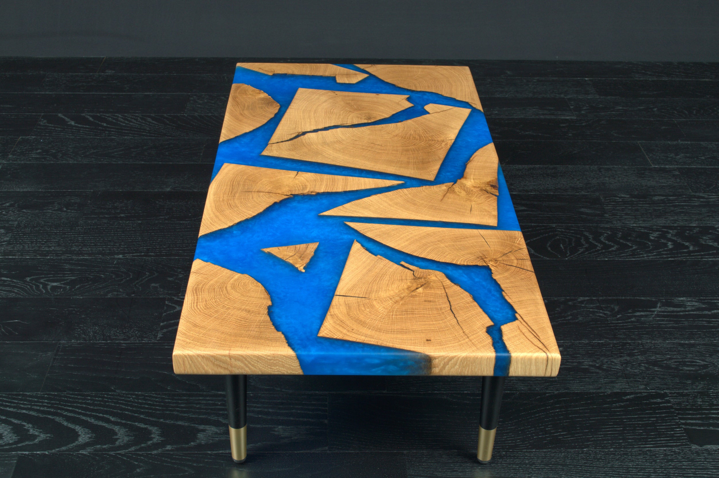 Table basse "Rivière" chêne & résine Deepsea 1000X600mm vernis brillant N°A132
