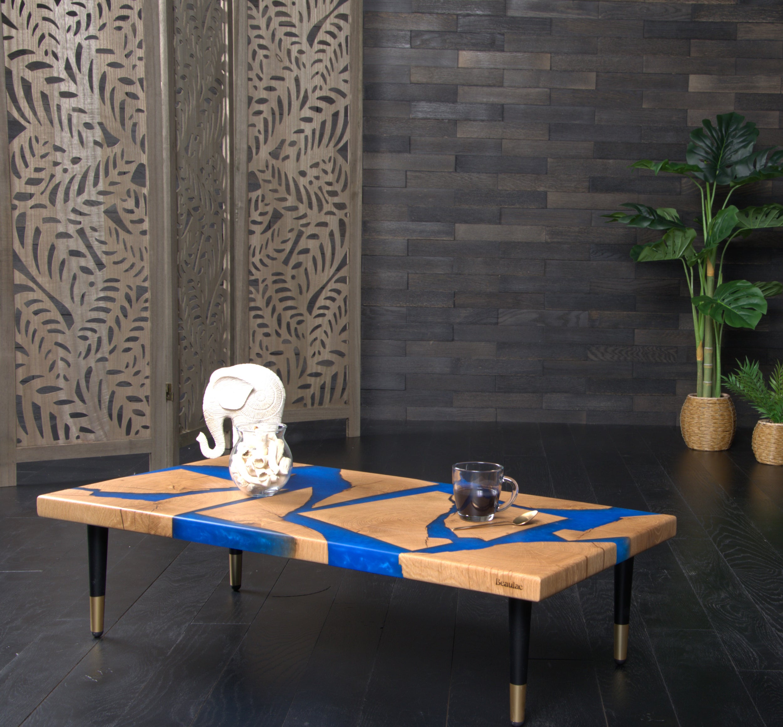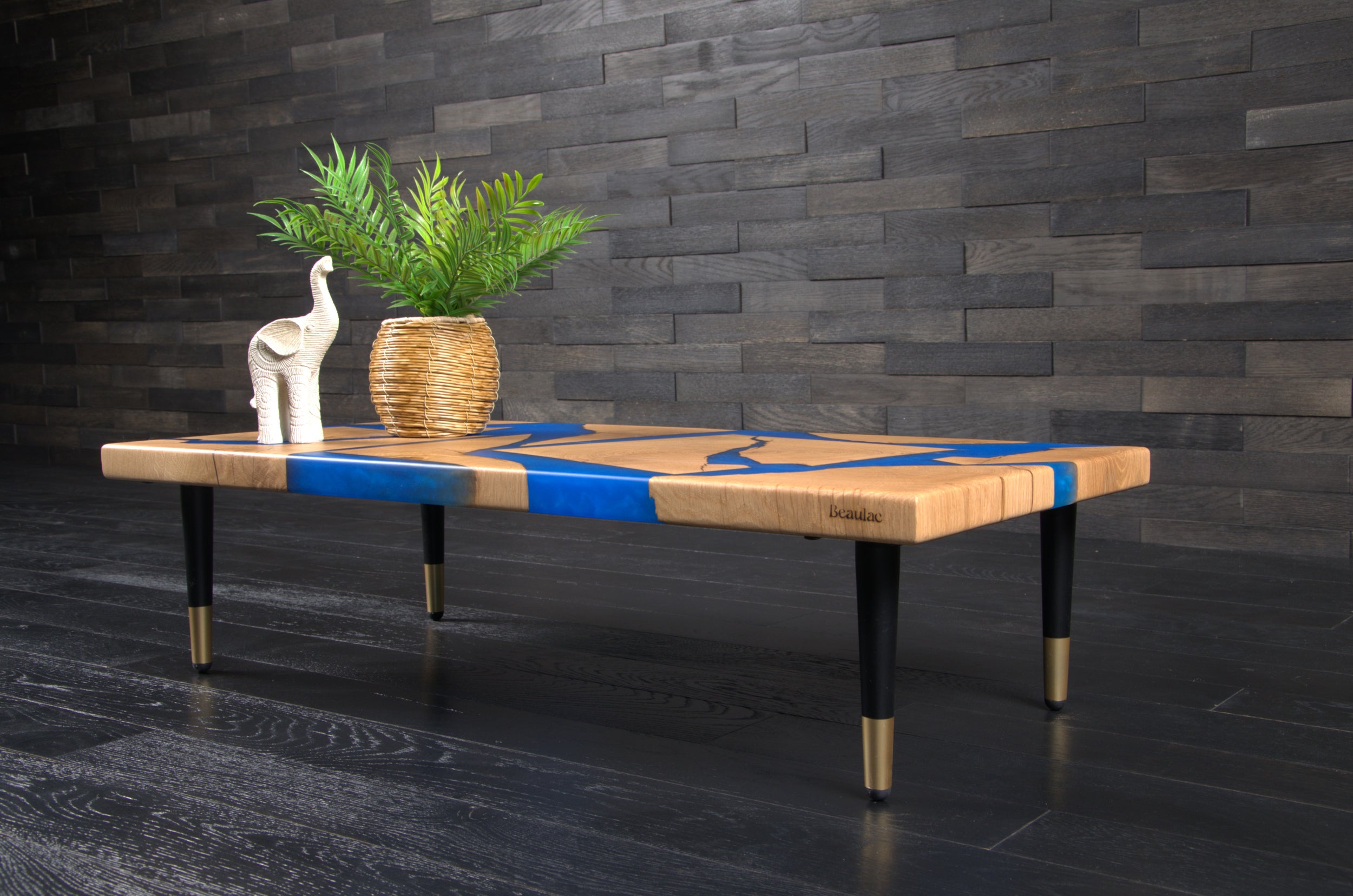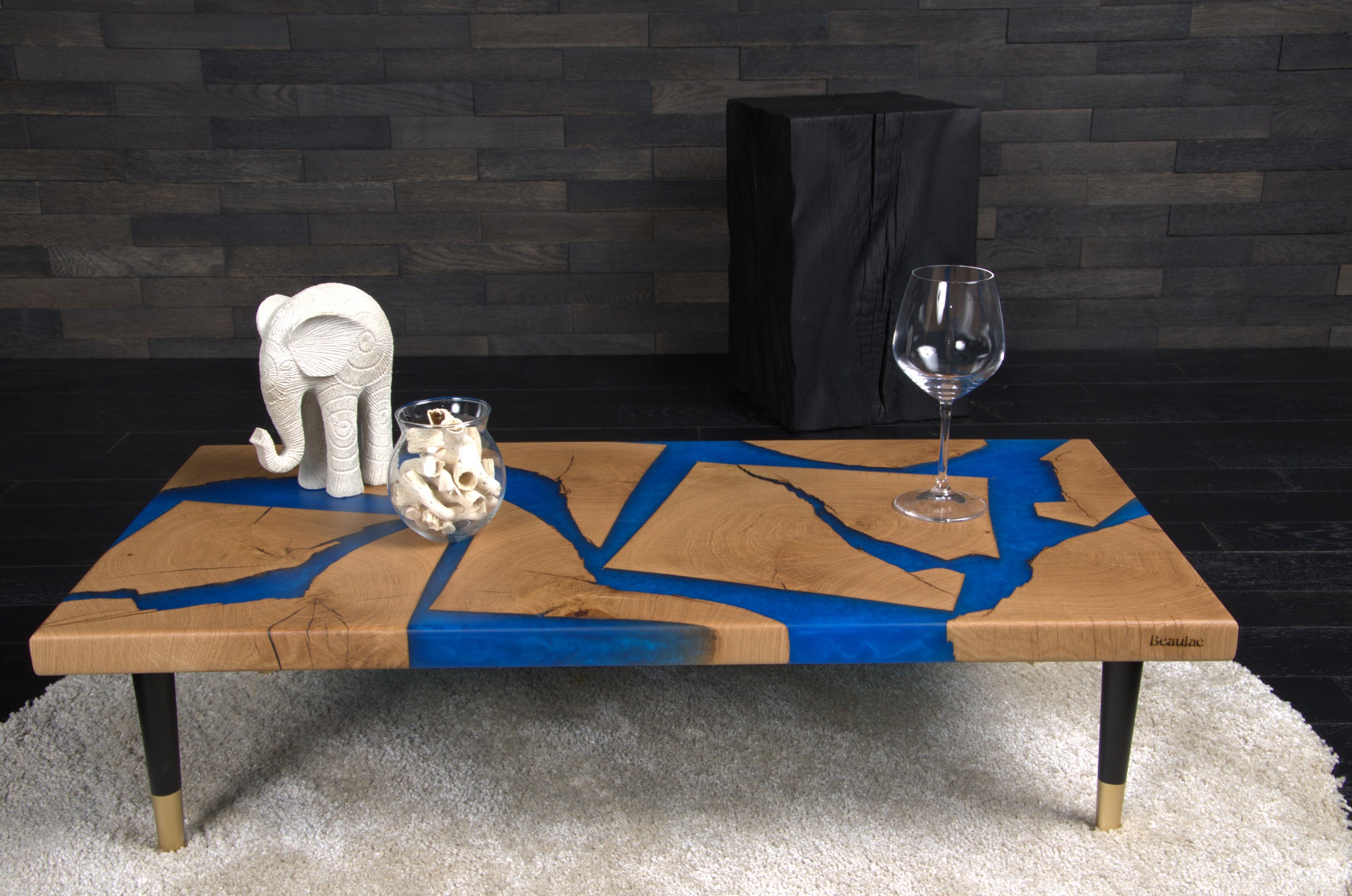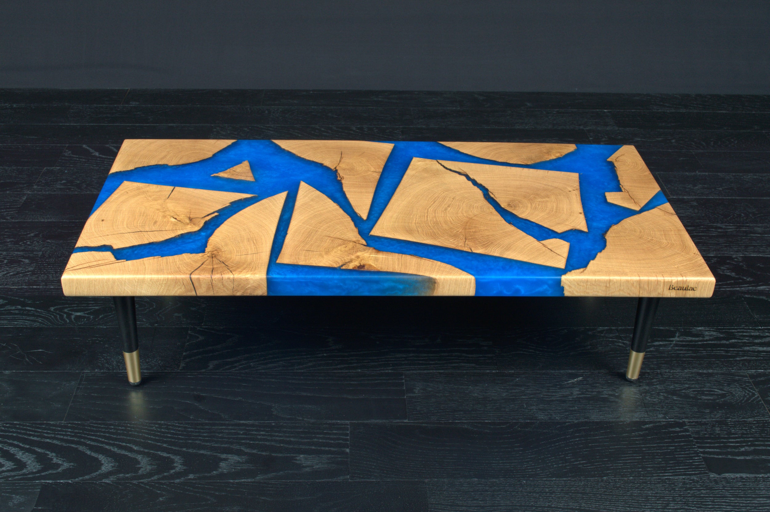 Sa finition en vernis mat protège durablement le bois tout en sublimant l’alliance entre la noblesse ancestrale du matériau et la modernité de la résine contemporaine.