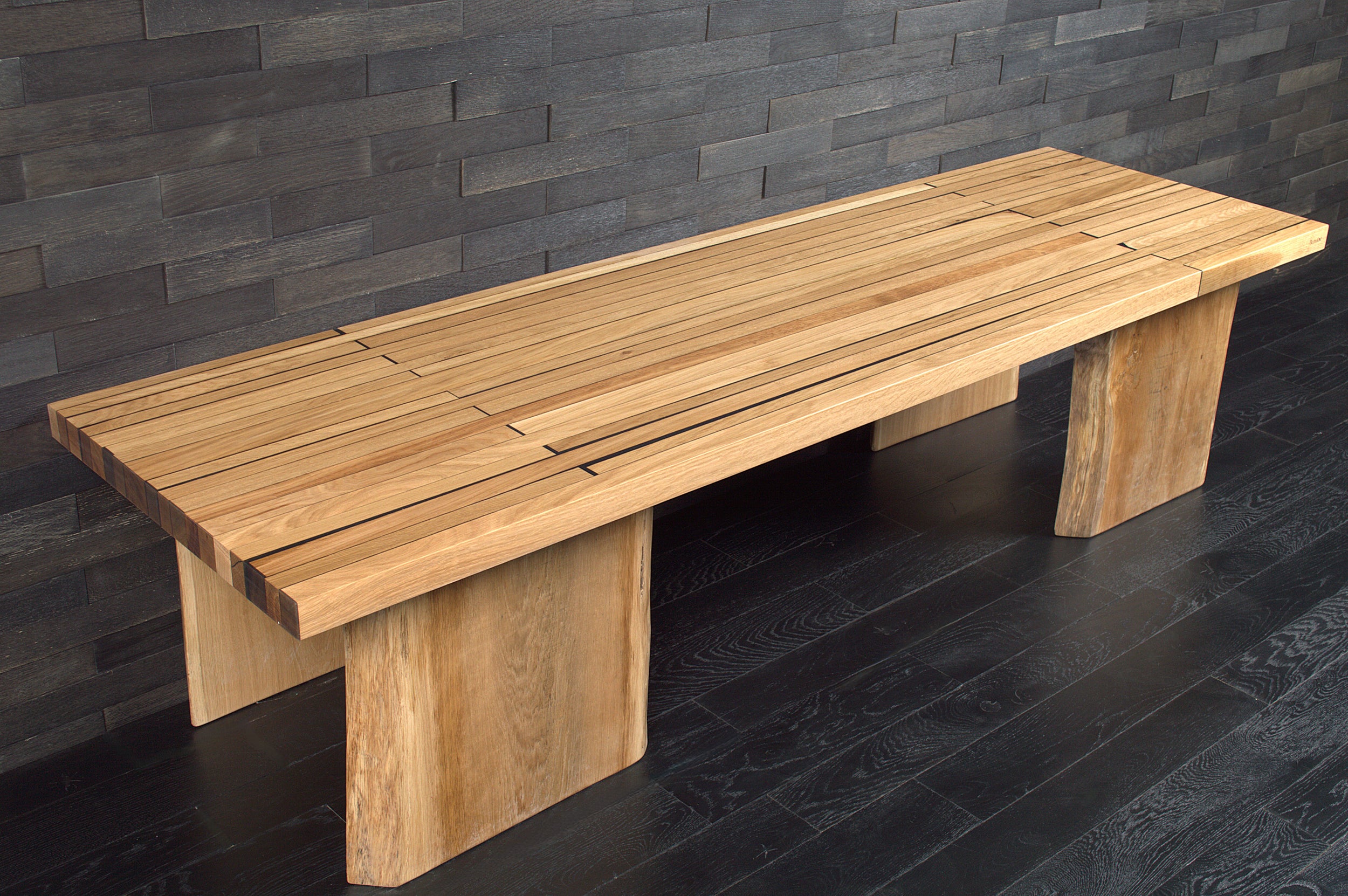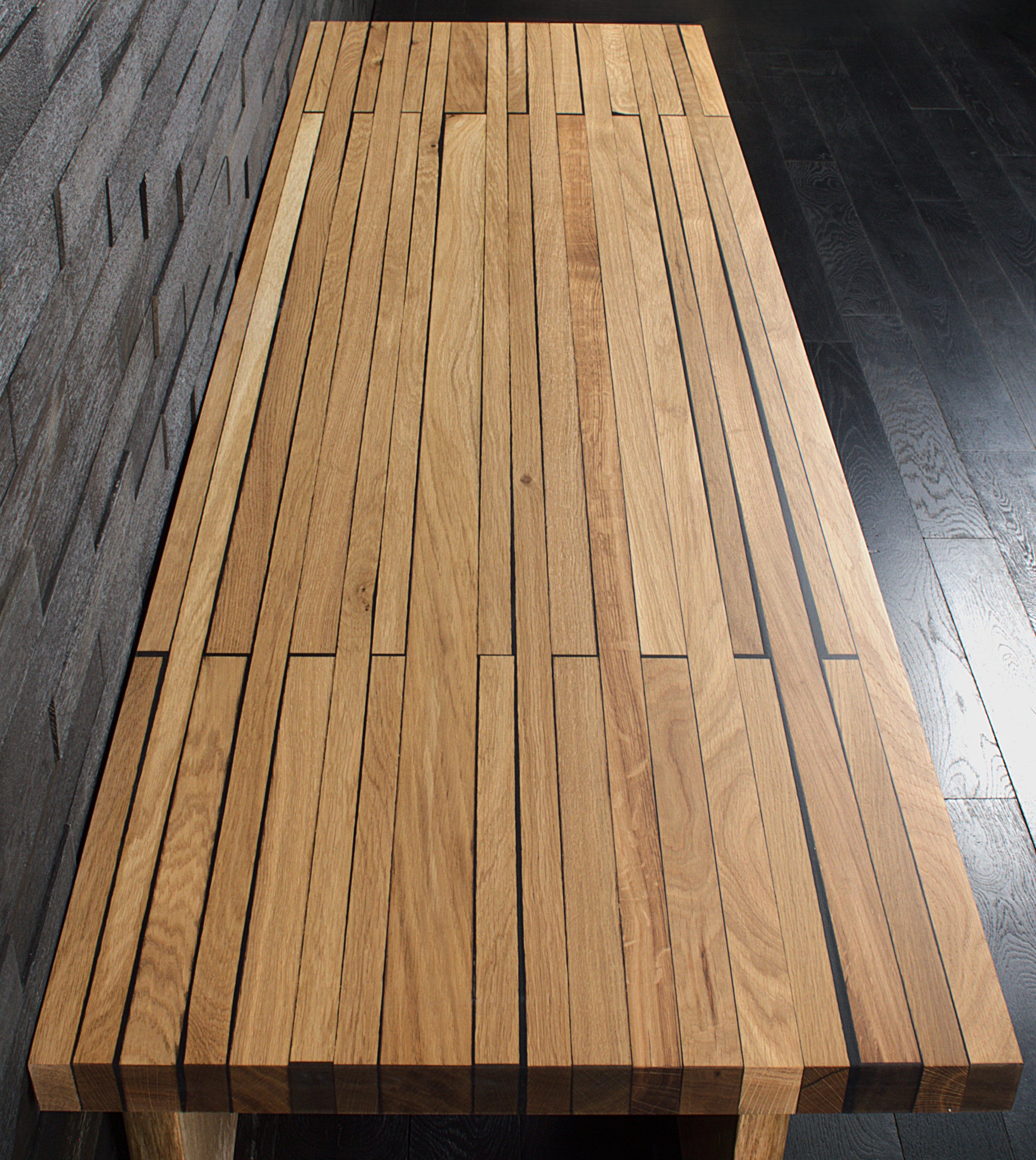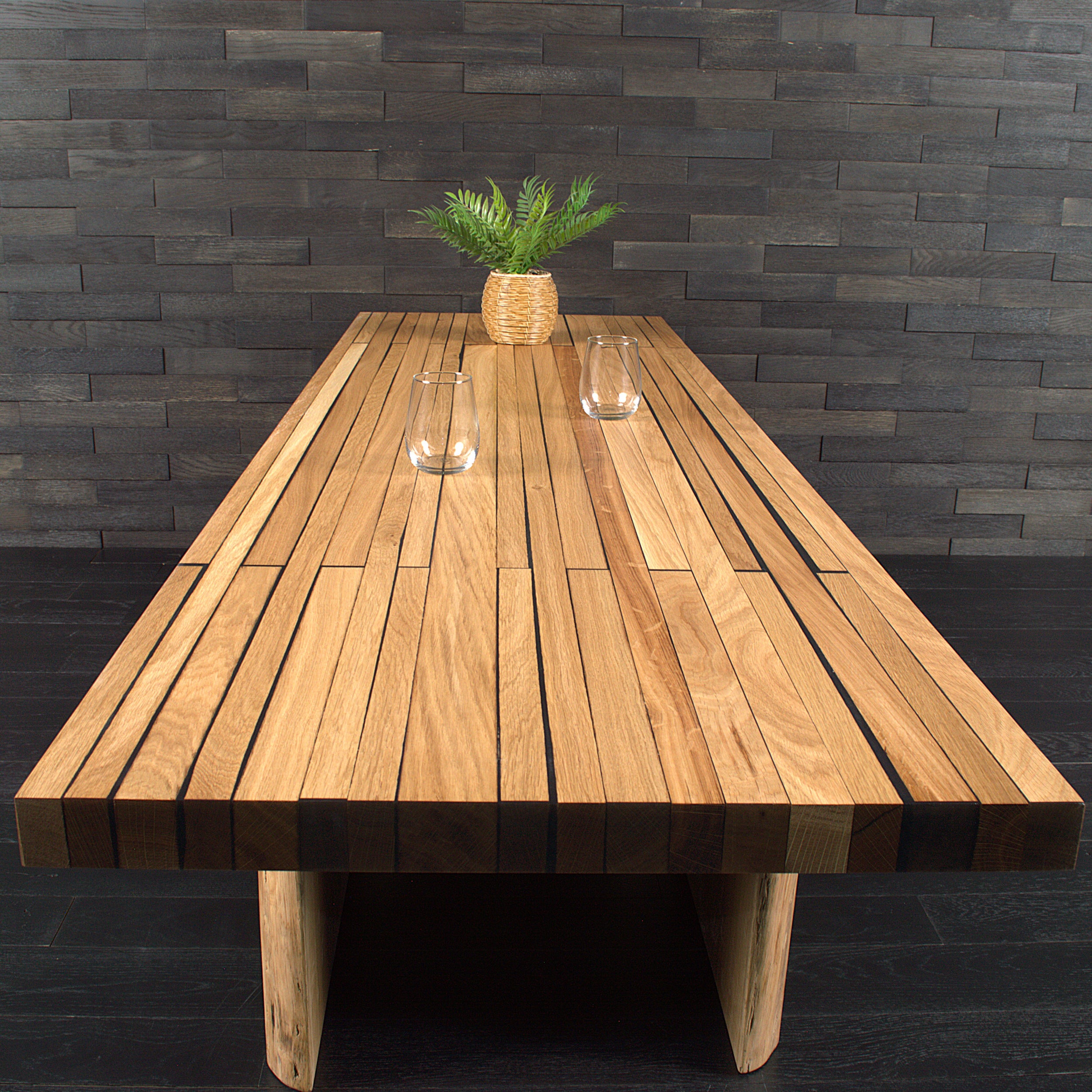 Table chêne massif vernis mat résine "Wet Alphalt" N°A108