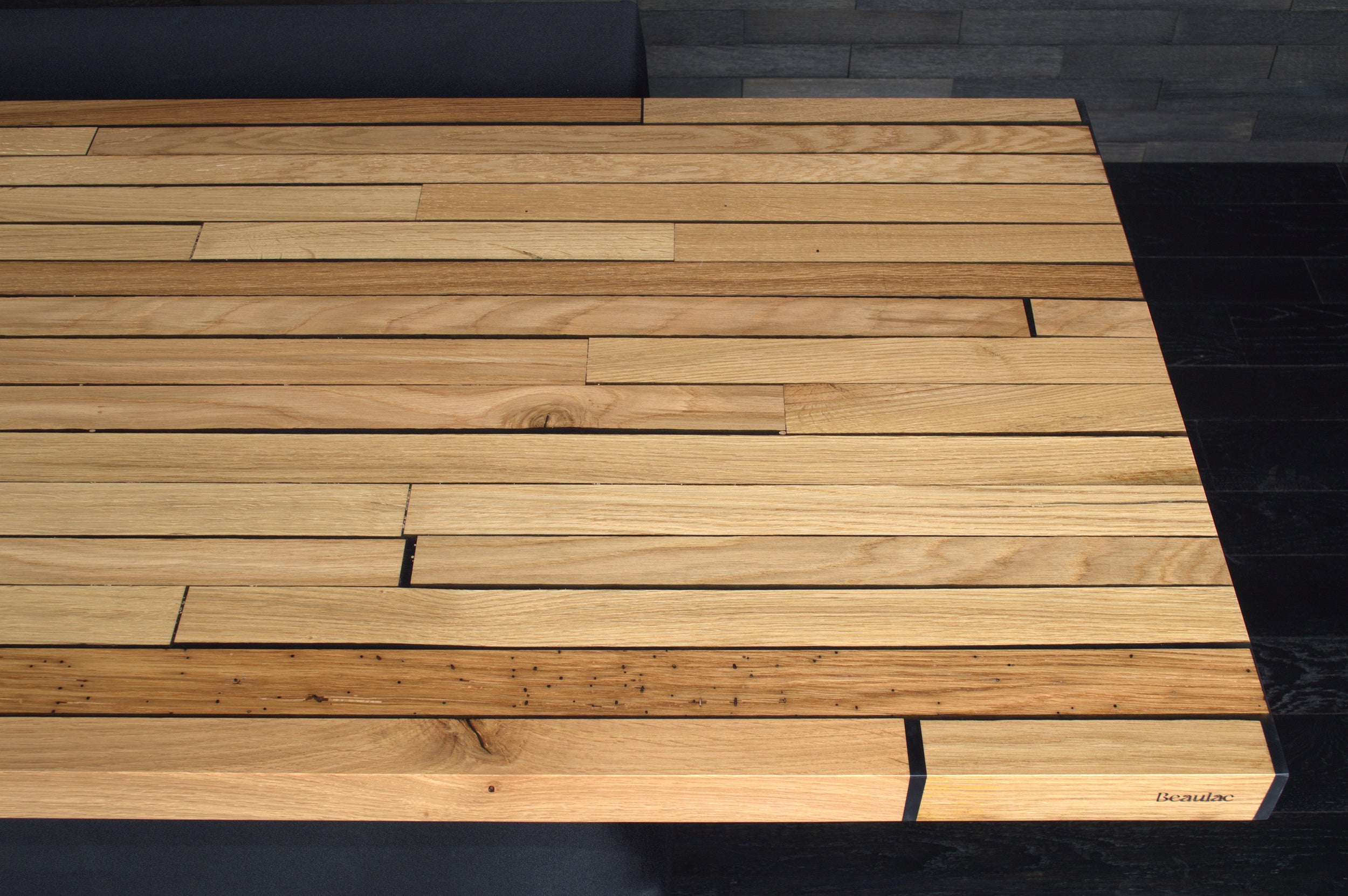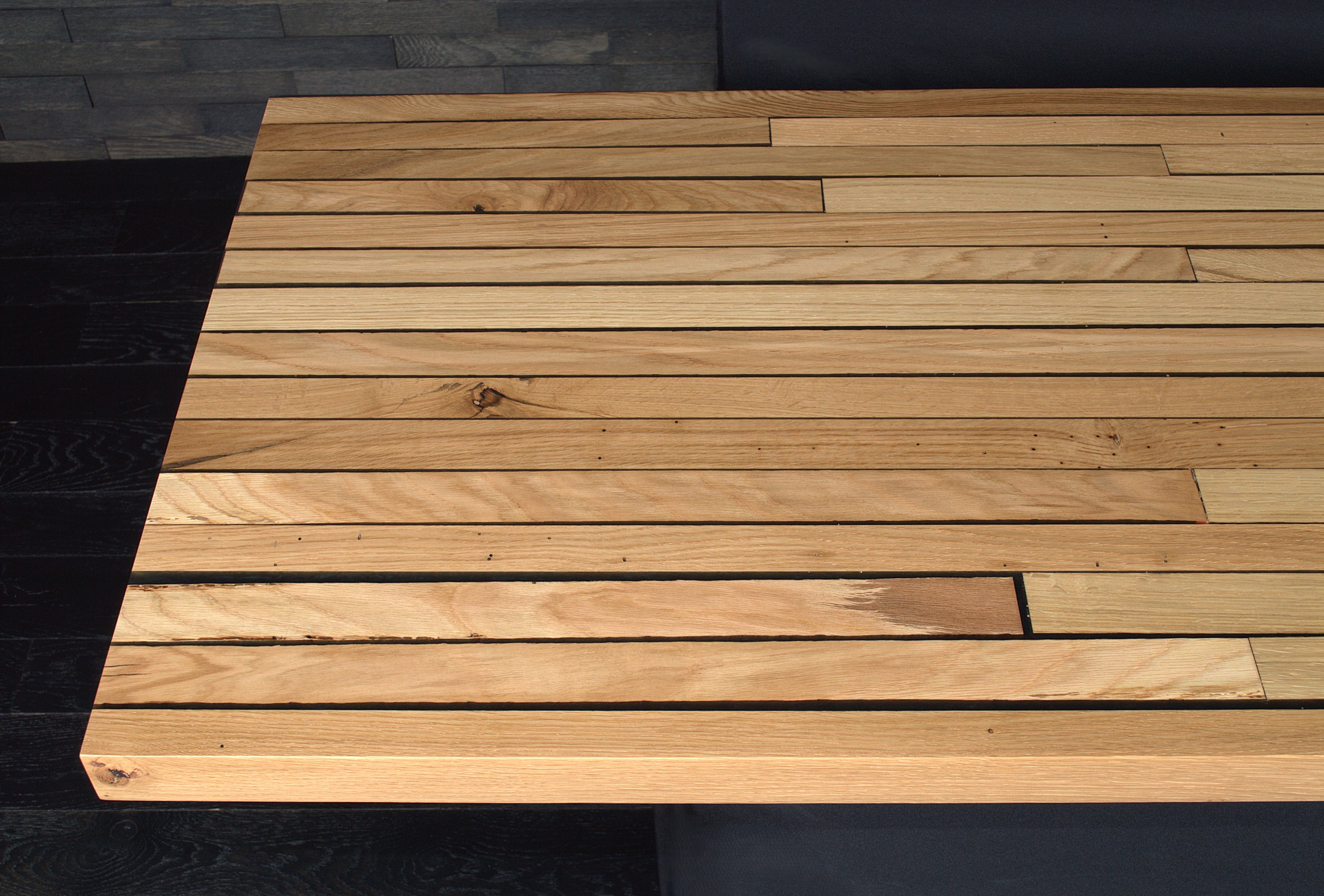 Table chêne massif vernis mat résine "Wet Alphalt" N°A108