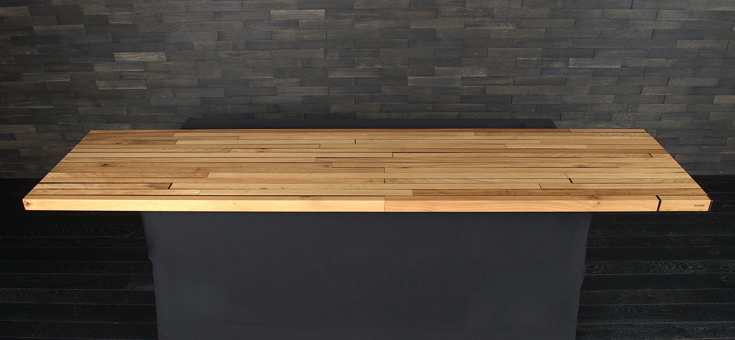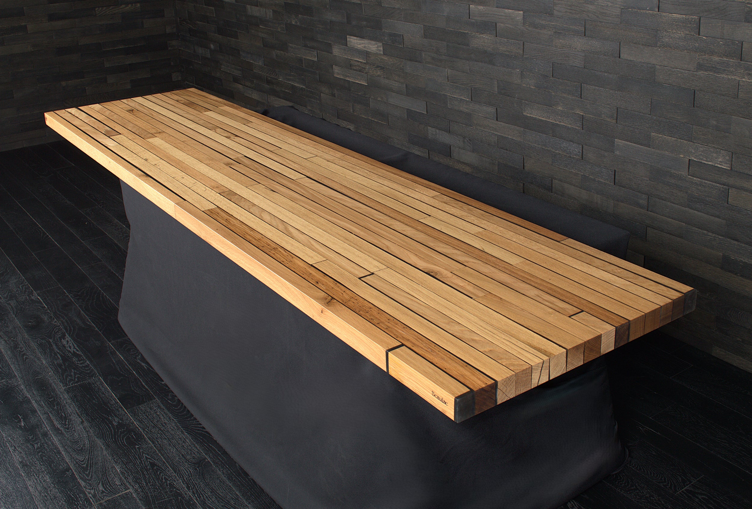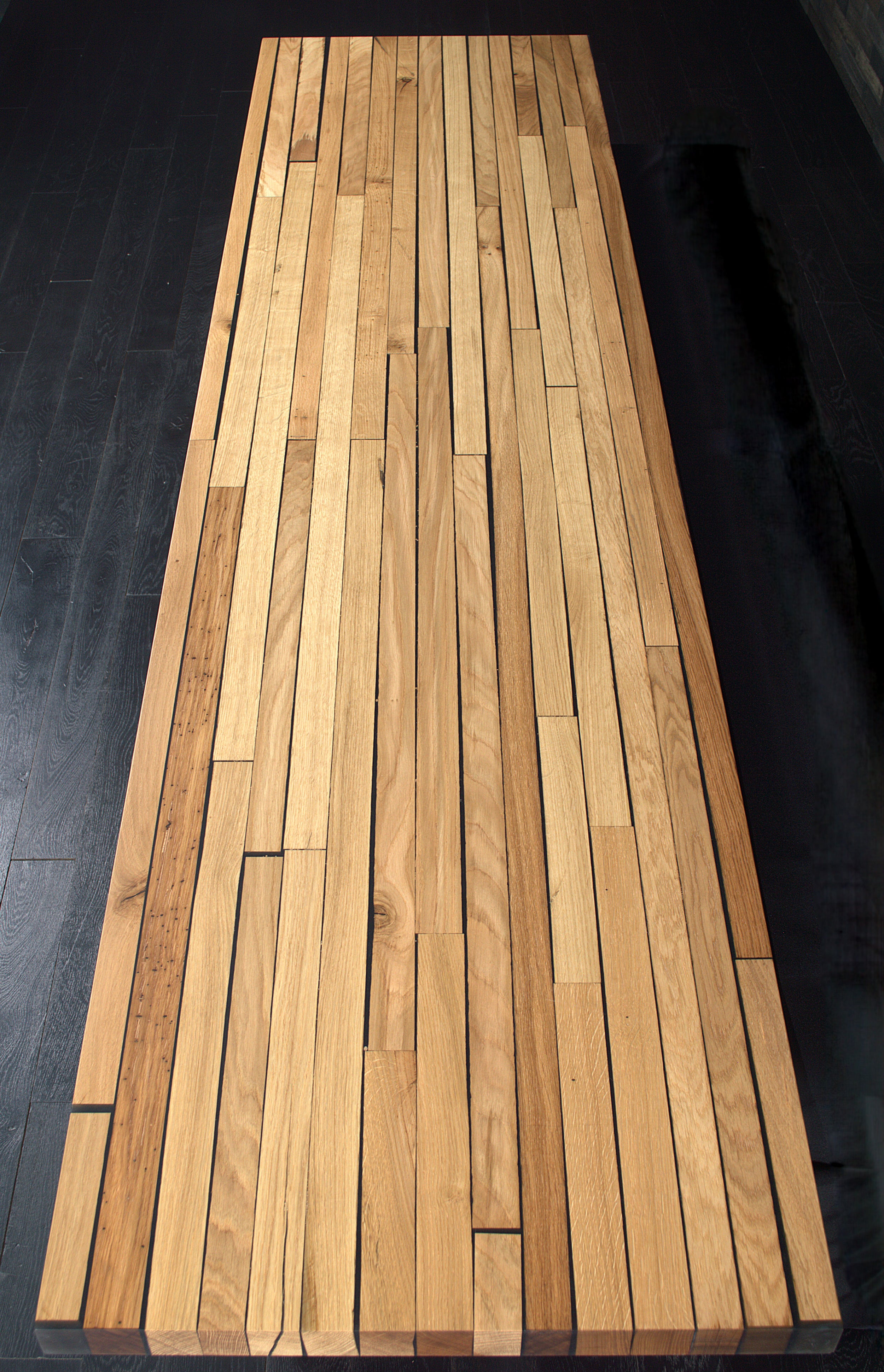 Plan de travail chêne massif résine noir 2400X600mm bords droits vernis mat N°A100