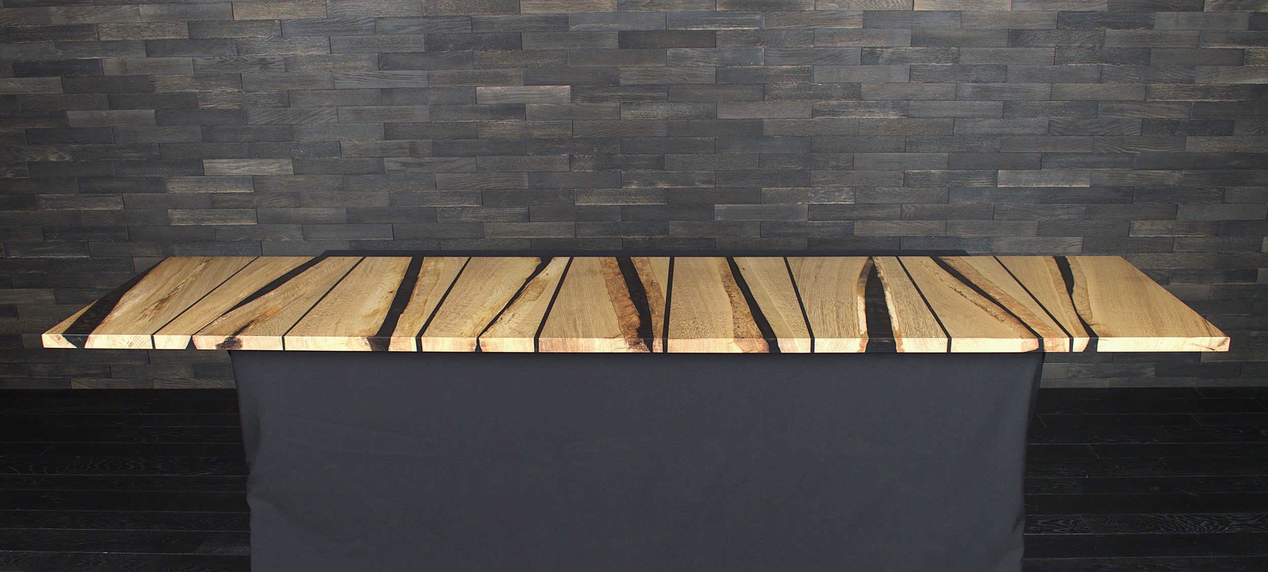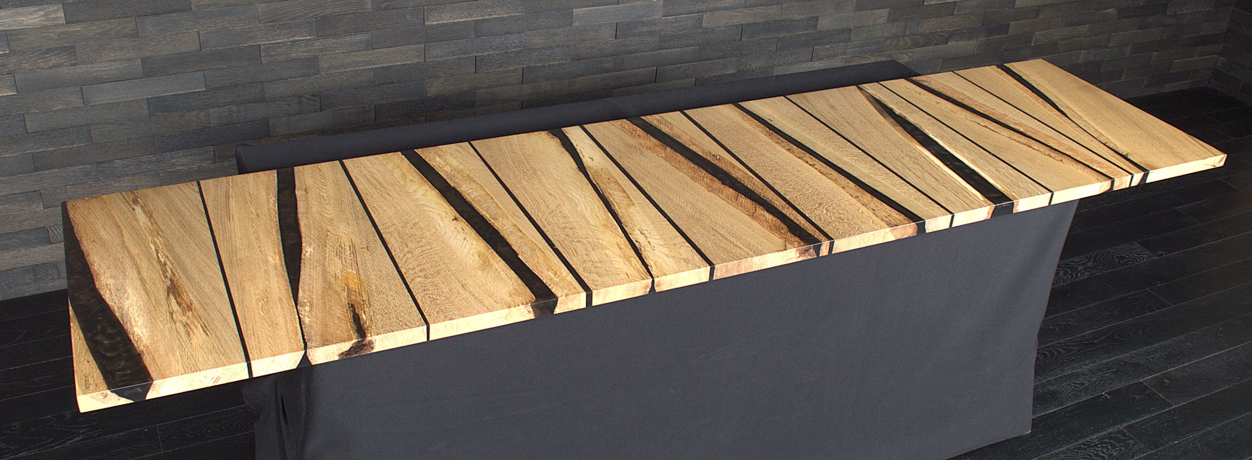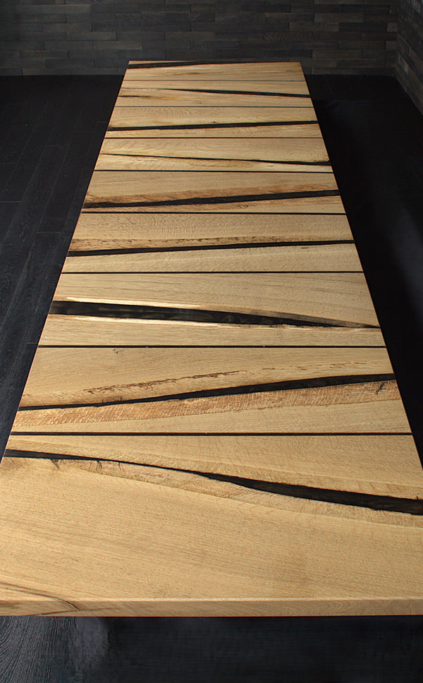 Table chêne massif vernis mat résine "Wet Alphalt" N°A108