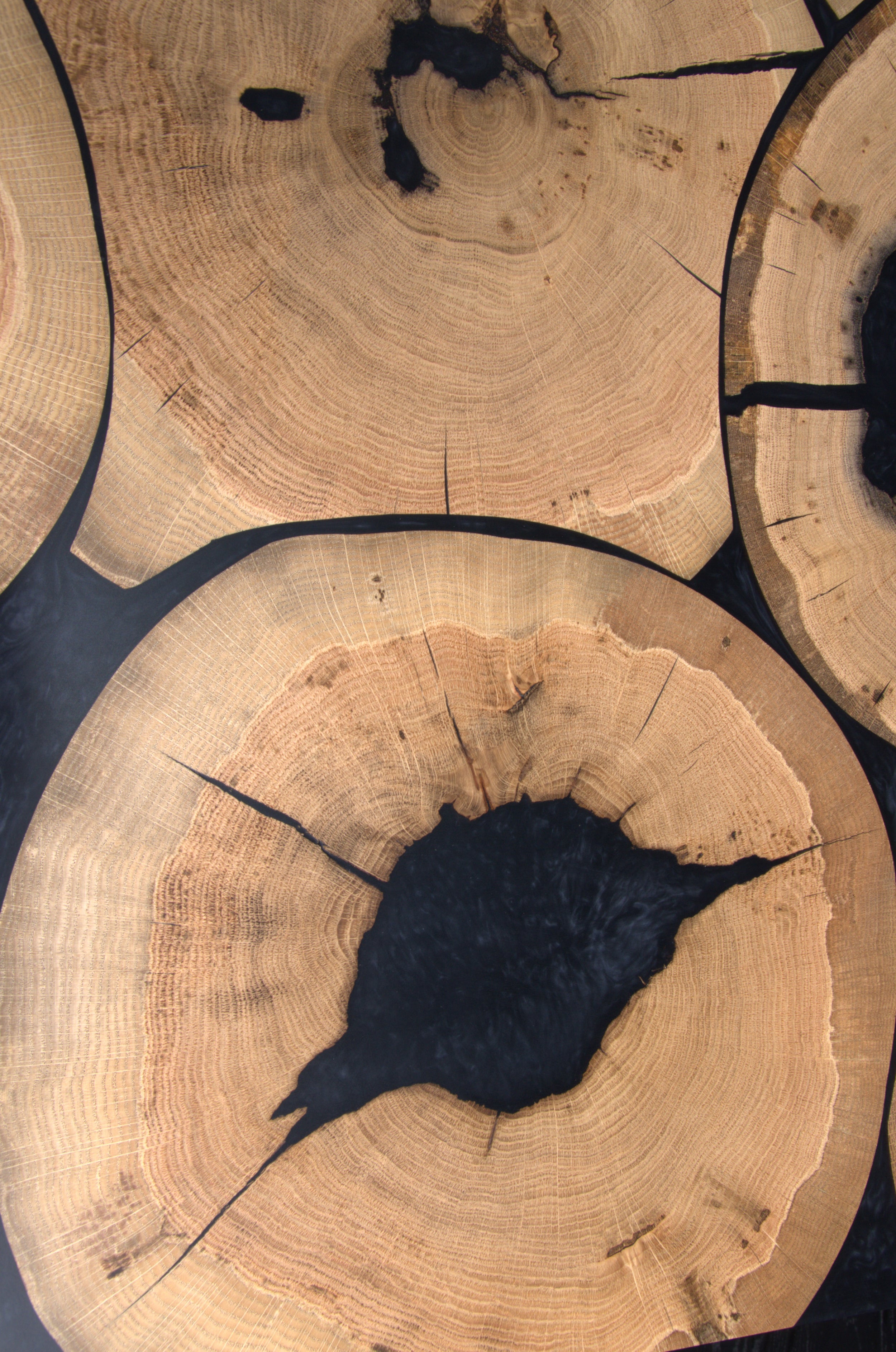 Plateau "Rondelles" Chêne résine WETASPHLT 38X2000x1000 BORDS DROITS VM (A038)