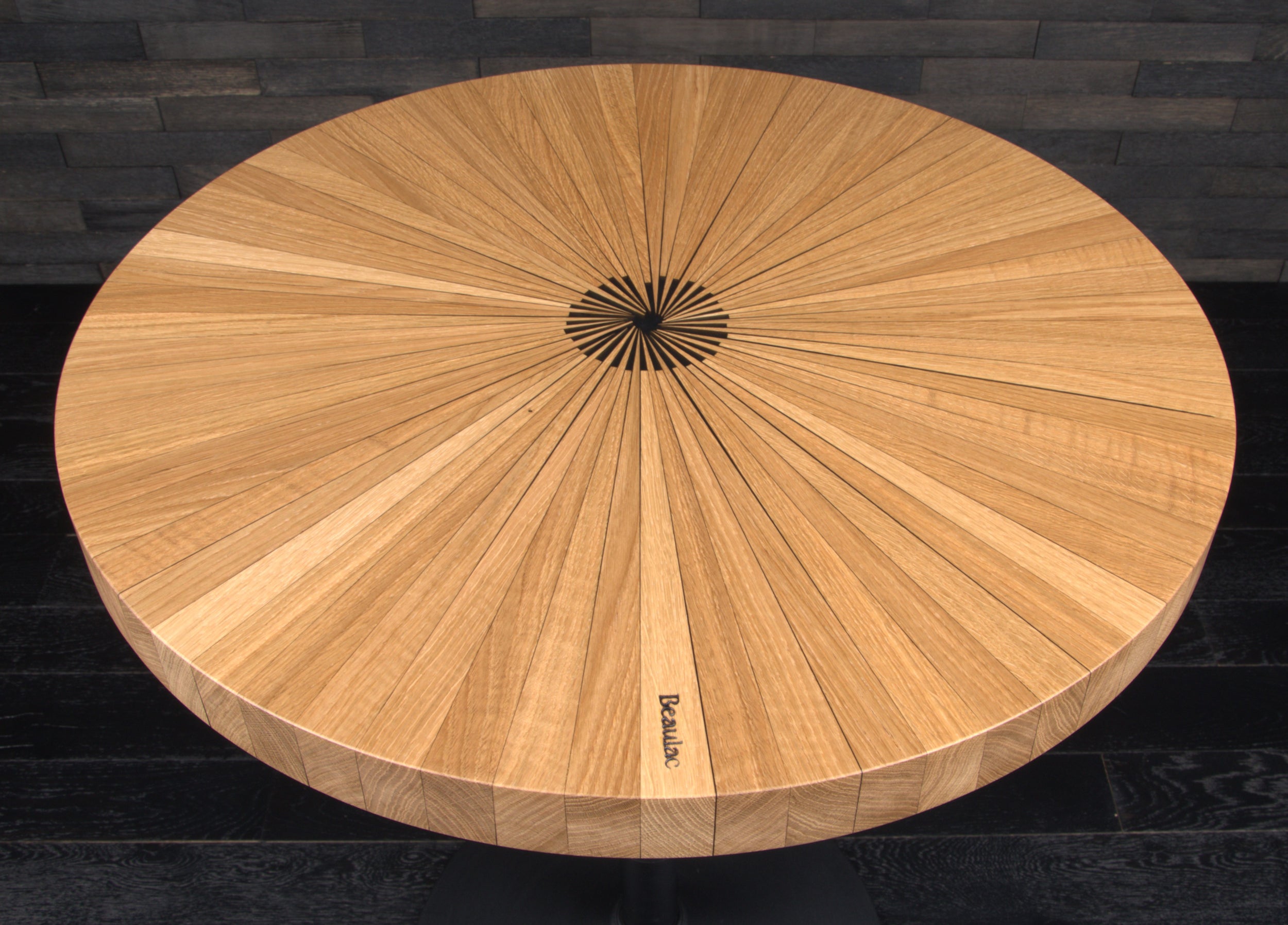 Table chêne massif 1990x990mm vernis mat résine Black Ice (N°A081)