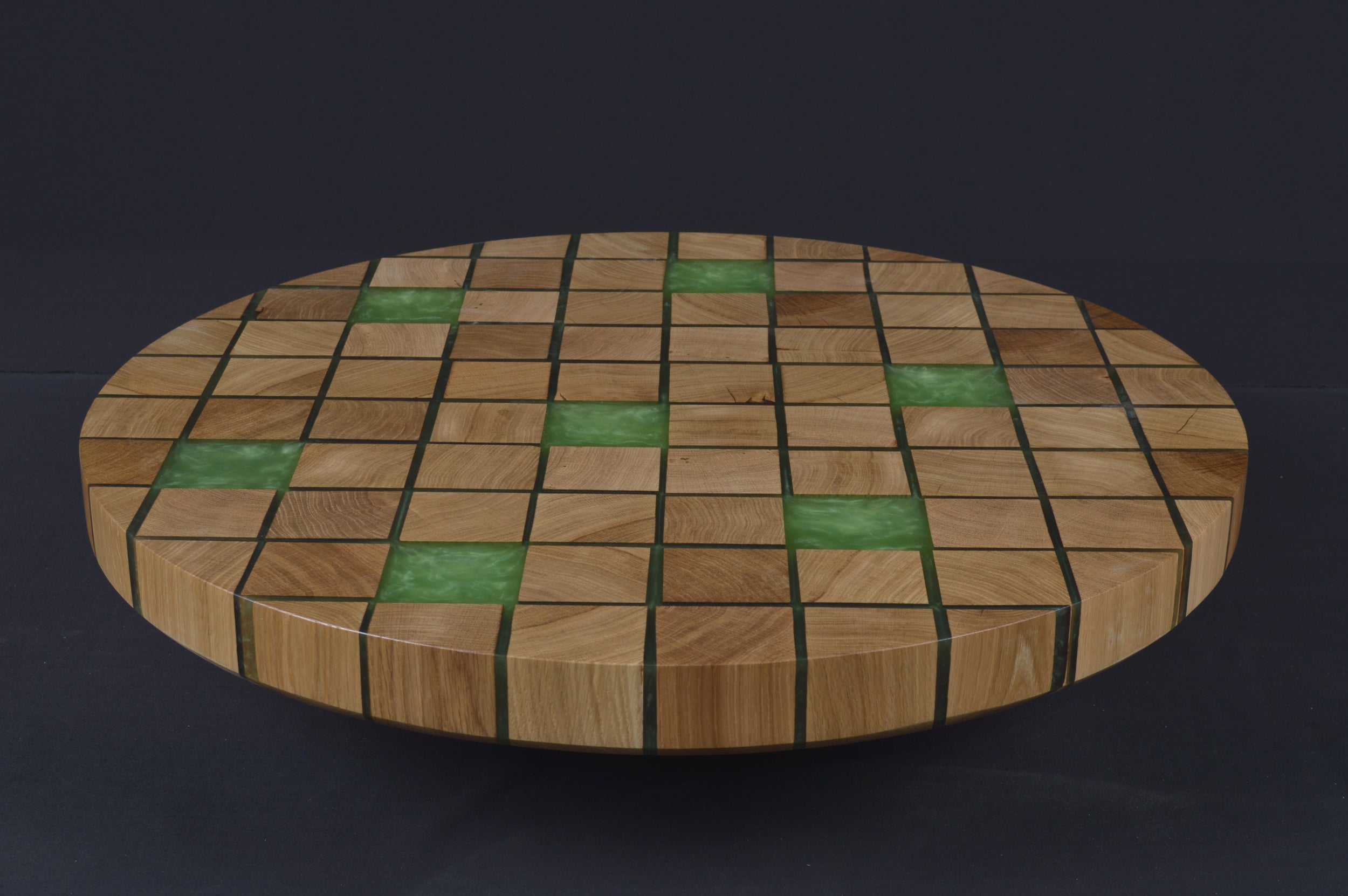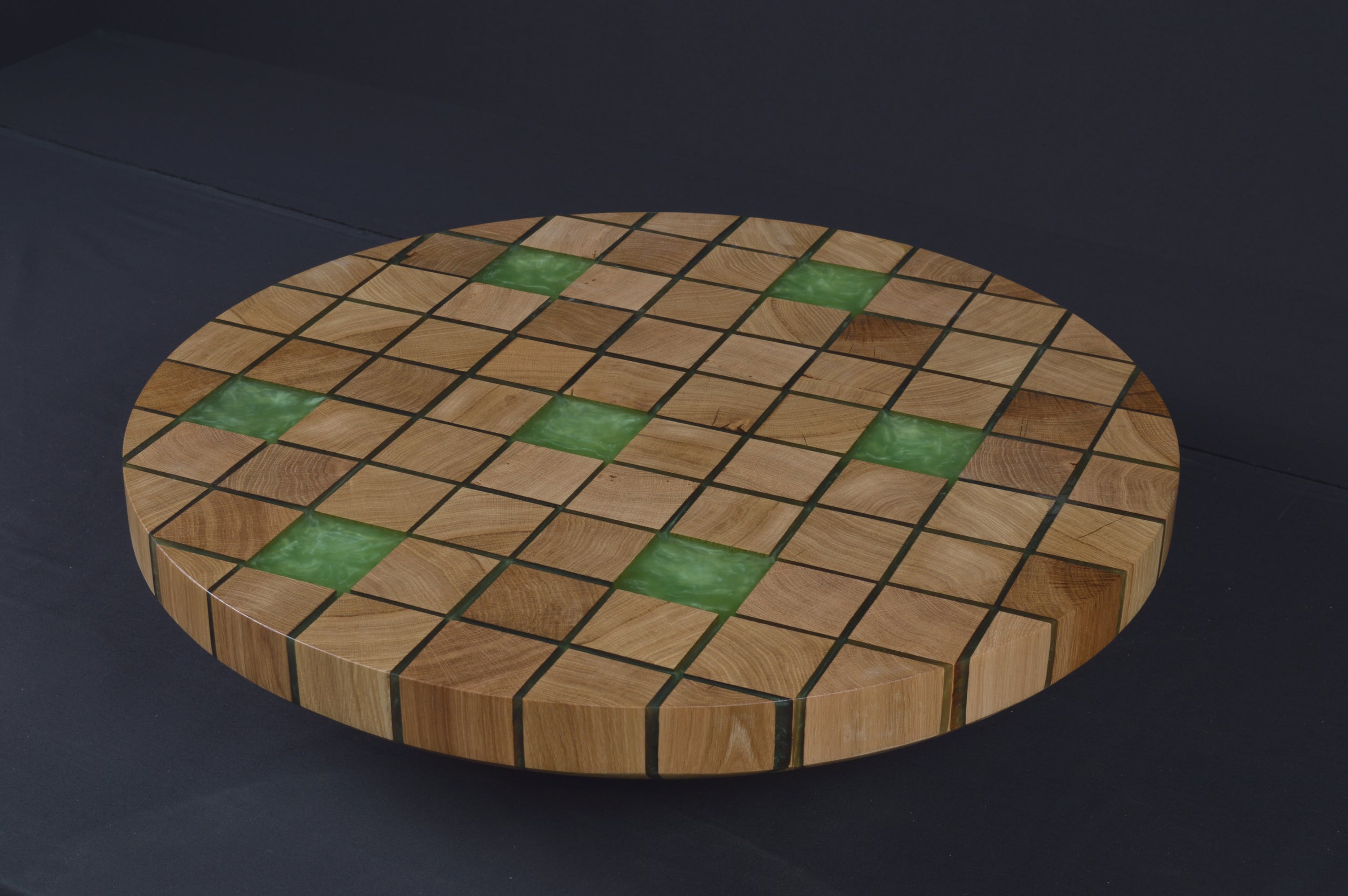 Plateau chêne BISTROT en chêne massif et résine Green Apple – Pièce unique N°A045