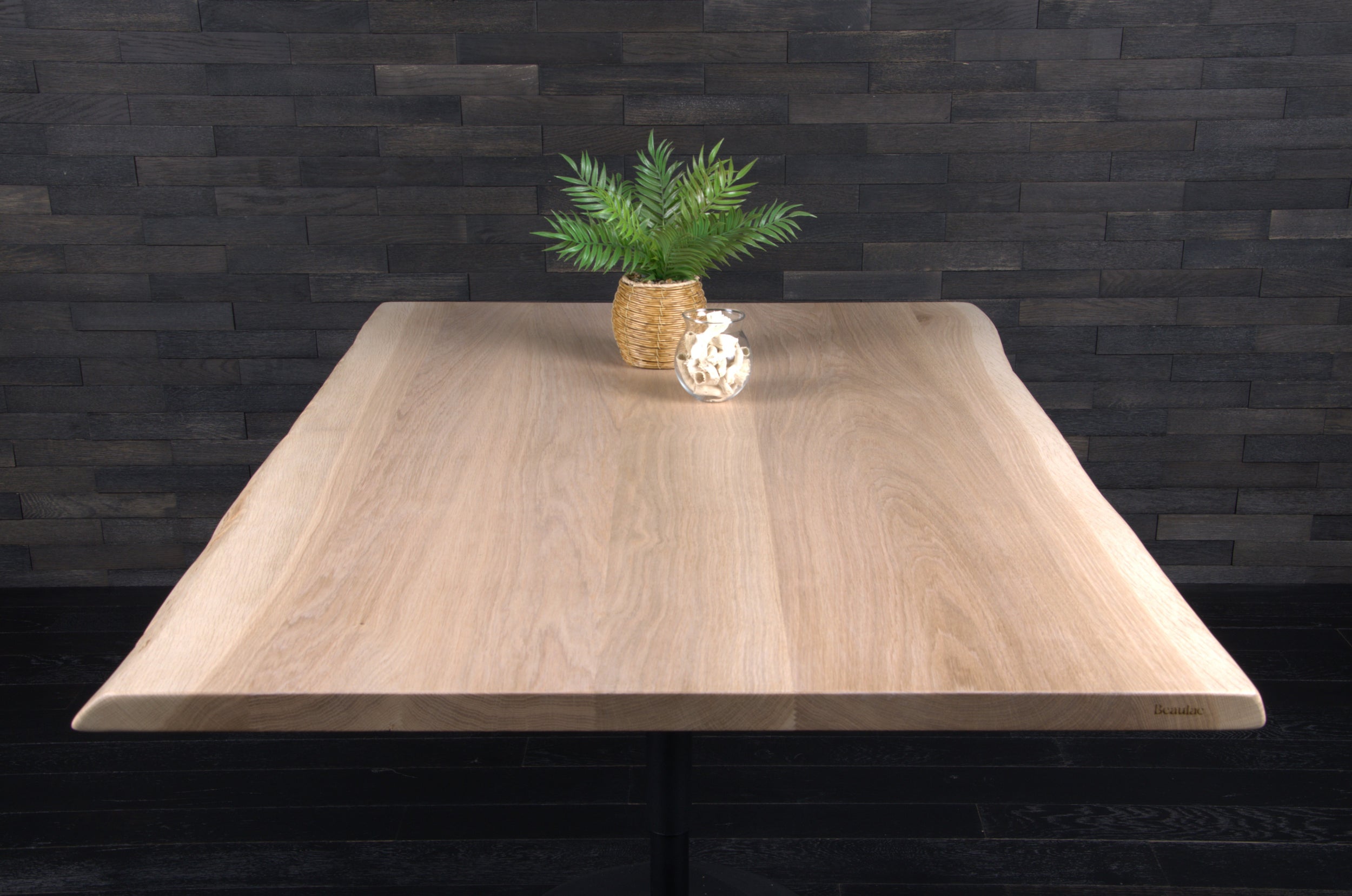 Ce plateau en chêne (Quercus), de dimensions 1400 mm x 910 mm, est idéal pour accueillir jusqu'à 6 personnes. Ses deux longs bords "Bords Nature Beaulac", façonnés à la main, offrent une esthétique brute et élégante qui séduira les amateurs de pièces singulières. Composé exclusivement de bois massif provenant de notre scierie bourguignonne, ce plateau révèle des grains serrés et lisses, témoins de son authenticité et de sa qualité, avec une finition vernis mat.