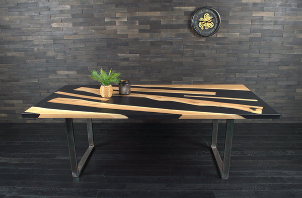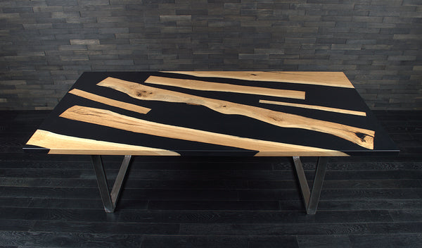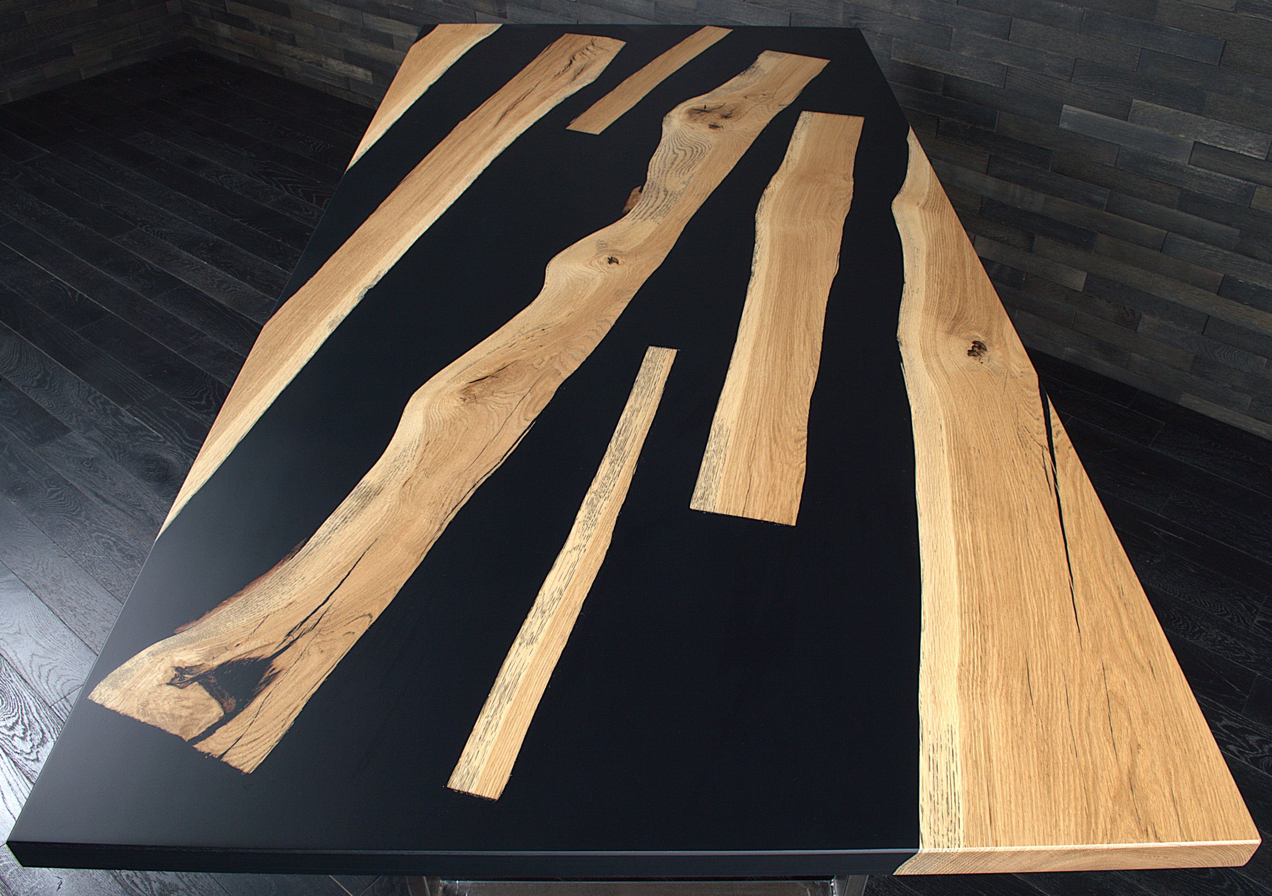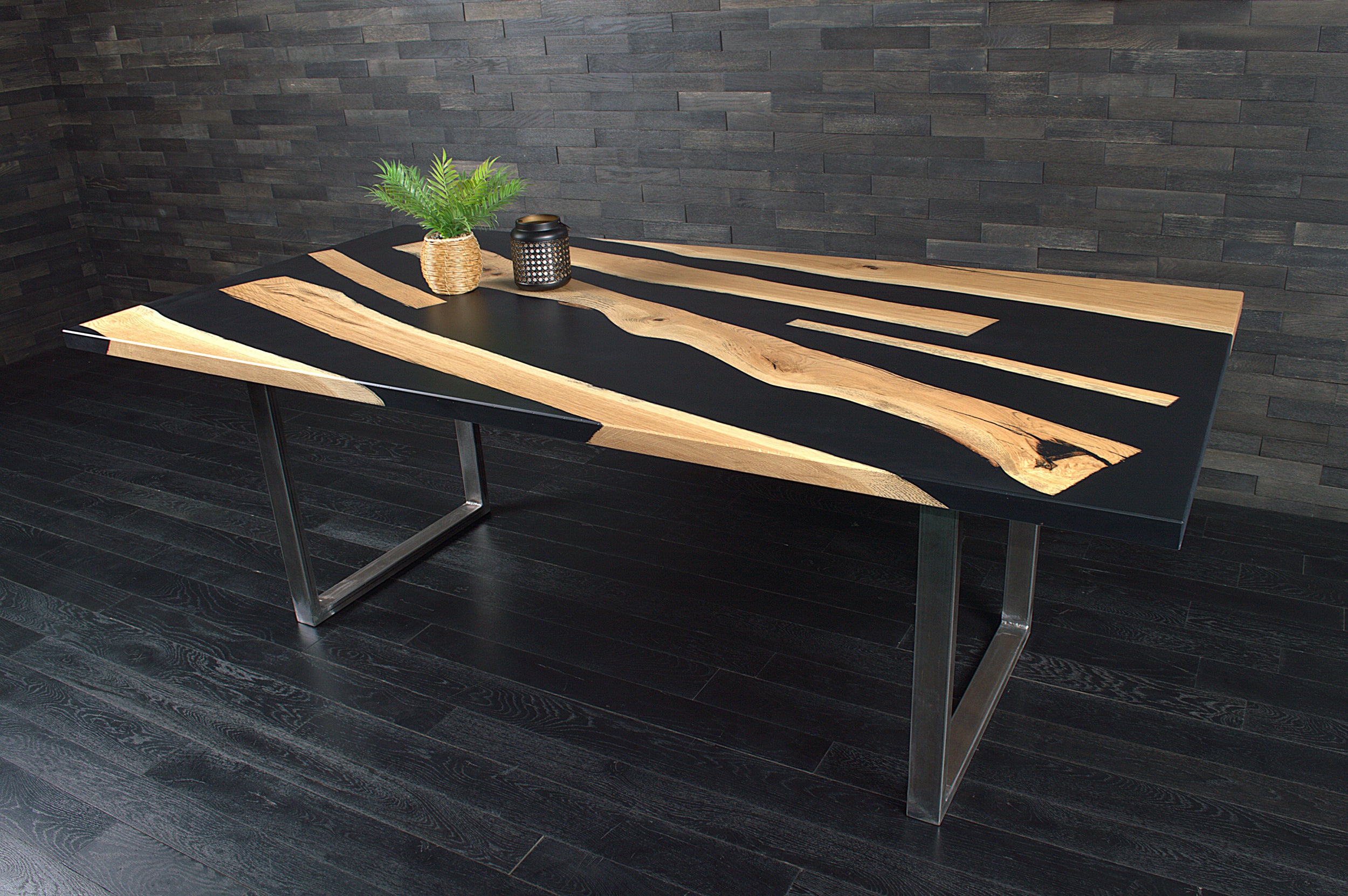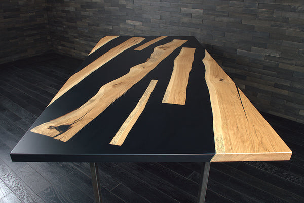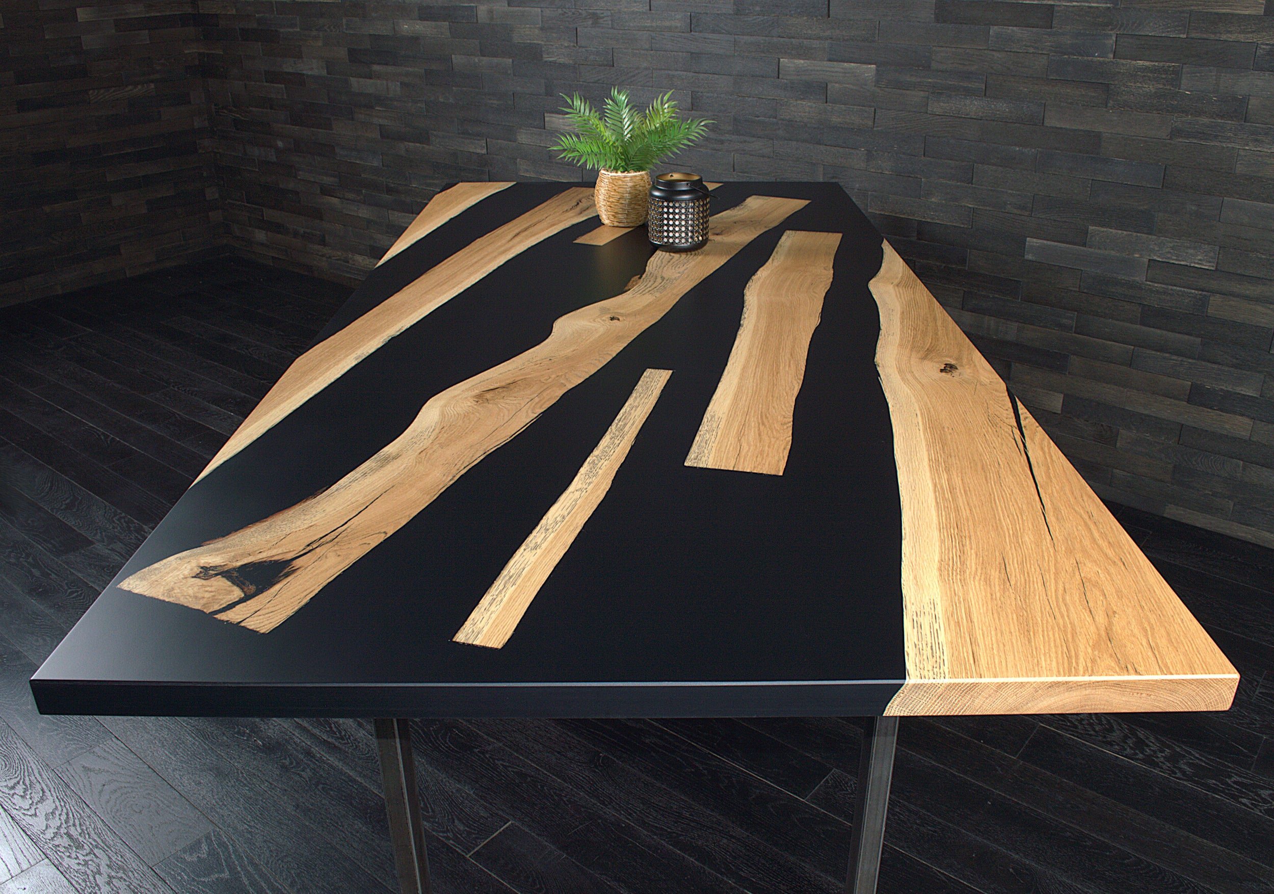 Plateau de table en chêne & résine noir – Pièce unique n°A138