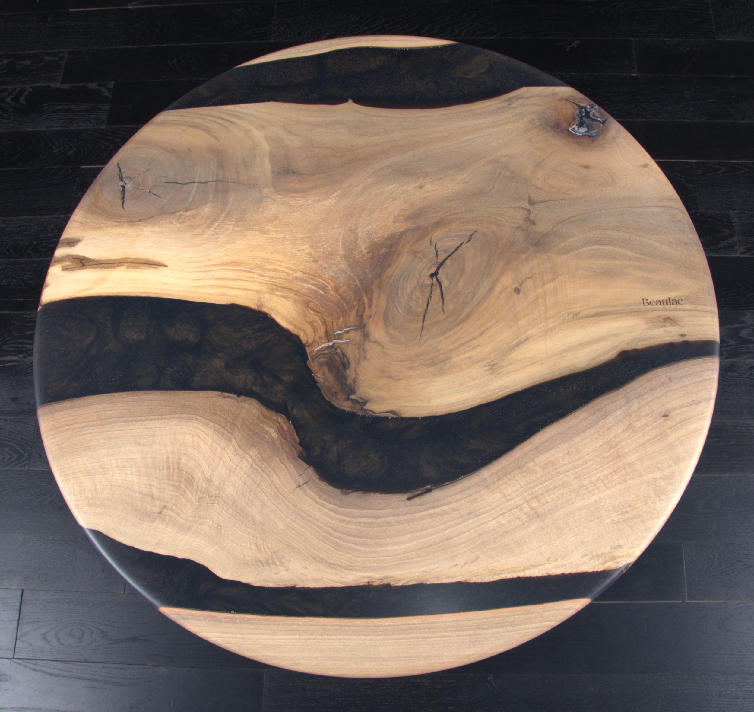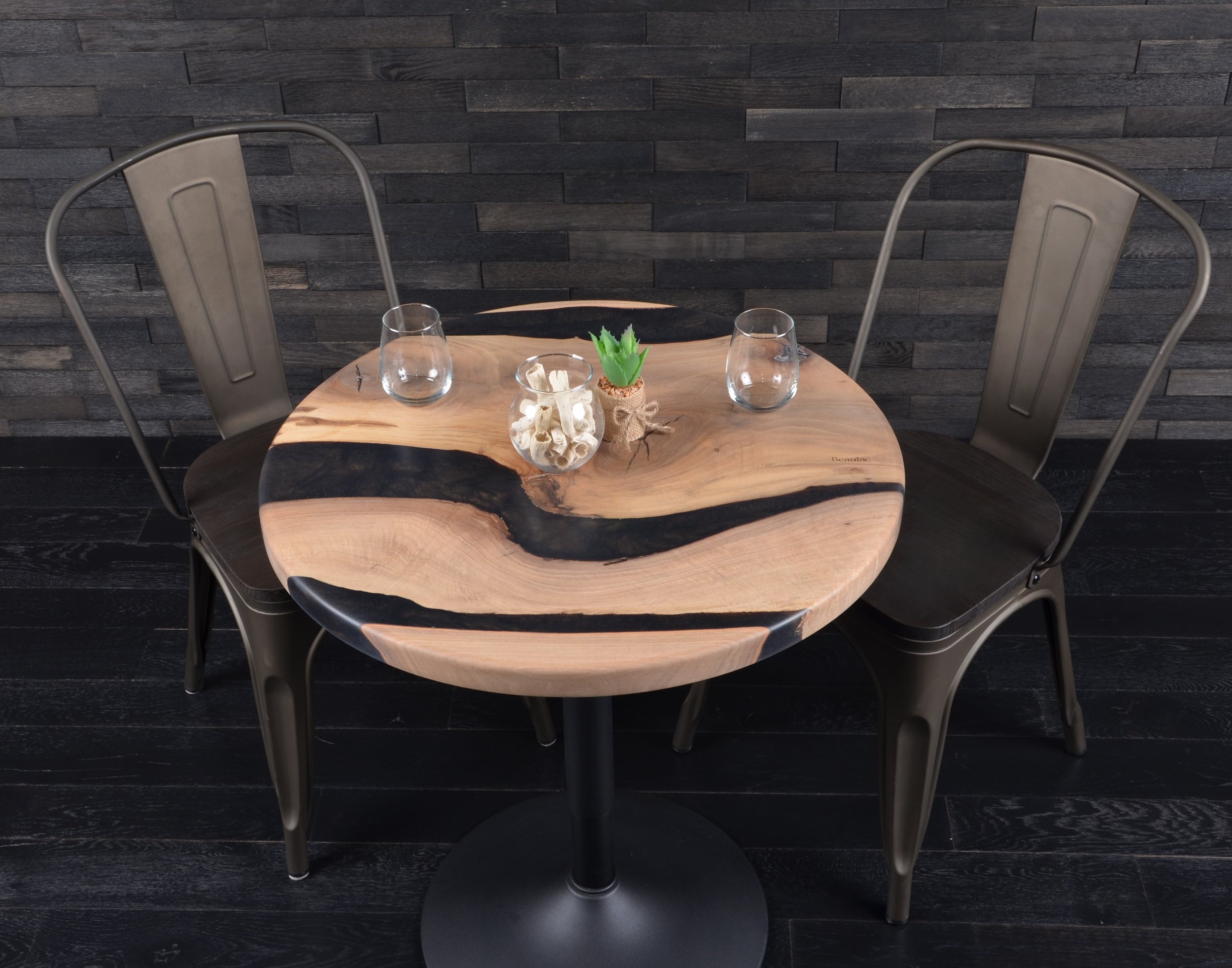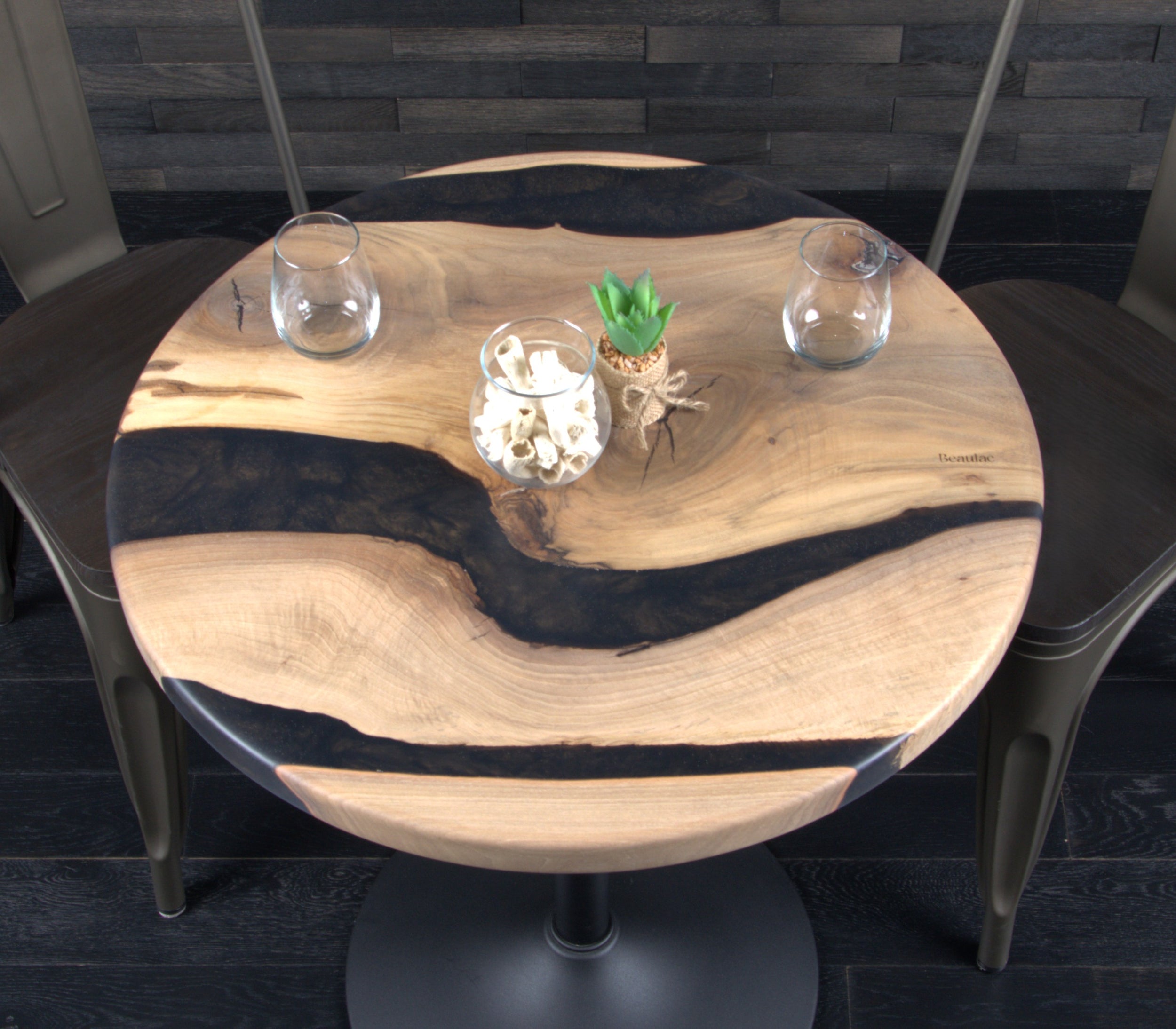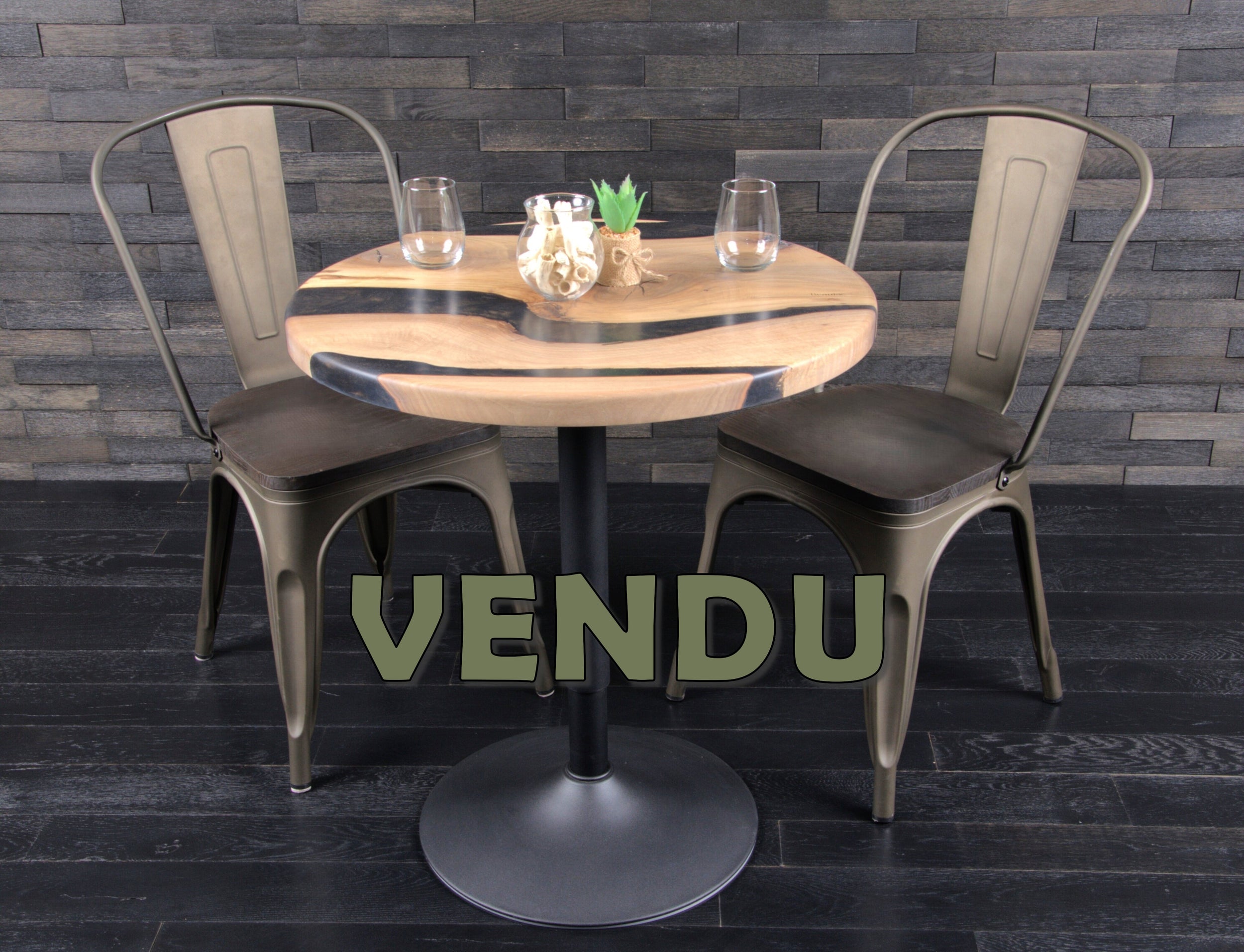 PLATEAU EN NOYER 680 MM " ESPRIT BISTROT " RESINE RUSTY (N° A077)
