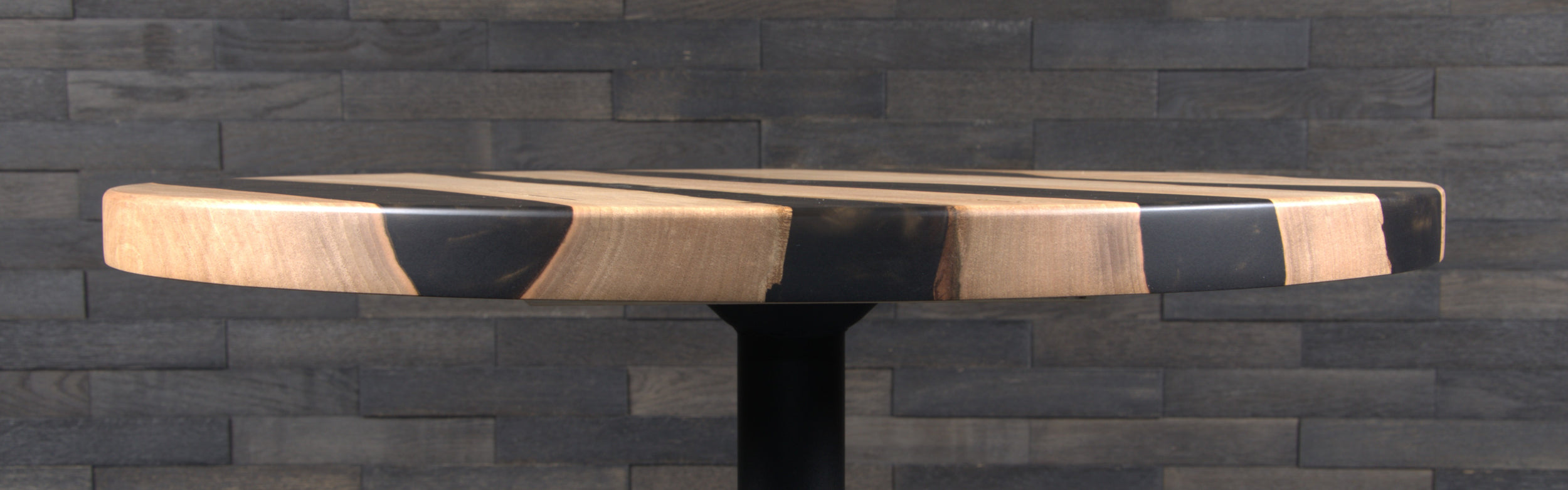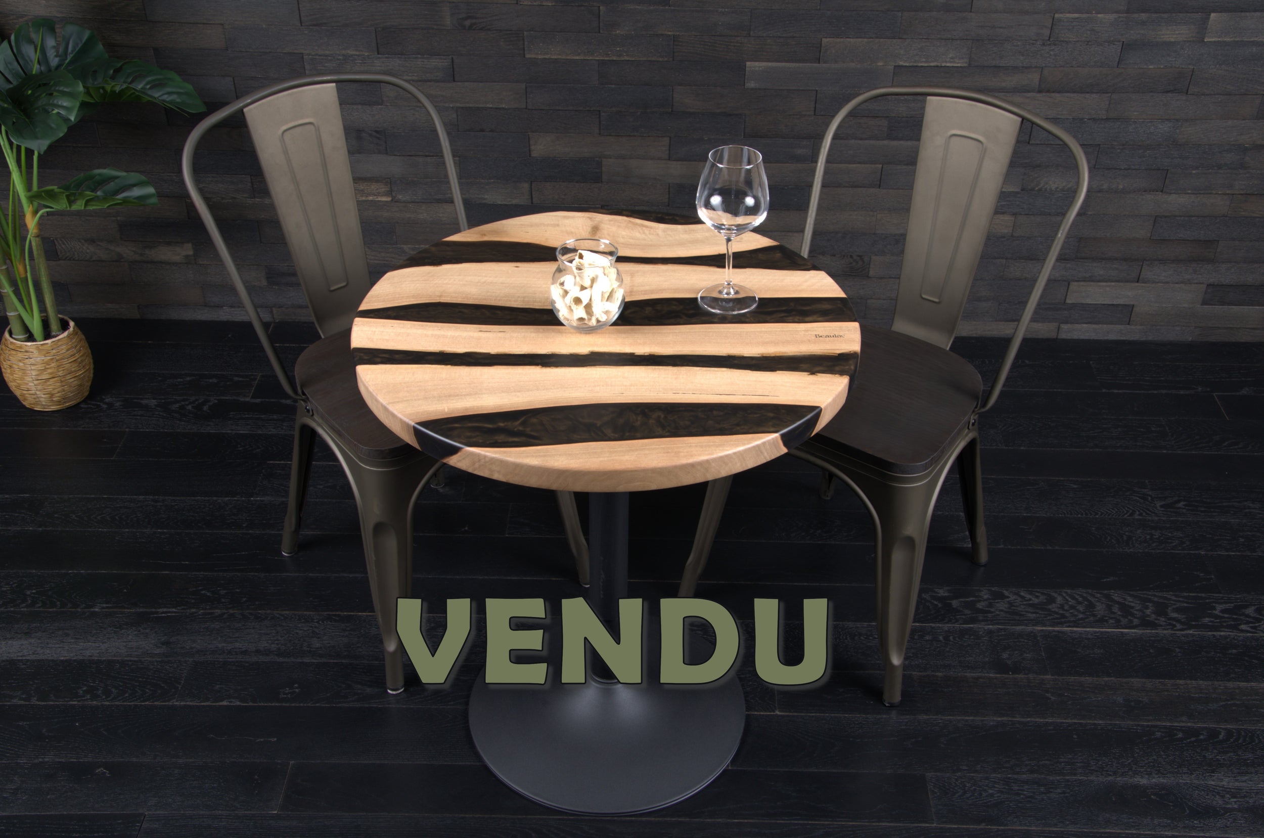 La finition vernis mat vient parfaire l’ensemble, en protégeant la surface tout en valorisant la richesse naturelle du noyer et les nuances de la résine.