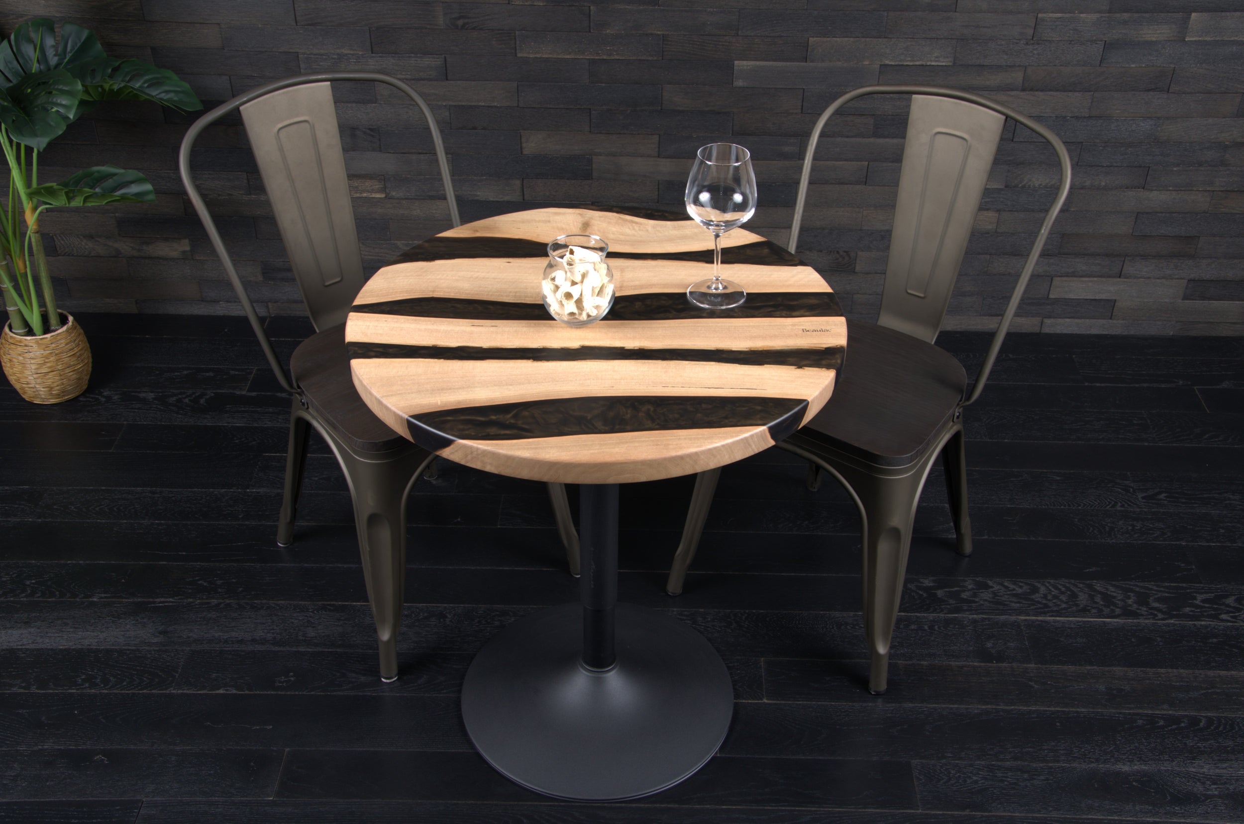 Pensé pour les instants partagés à deux, ce plateau bistrot allie chaleur du bois et caractère de la résine dans un format compact et élégant.