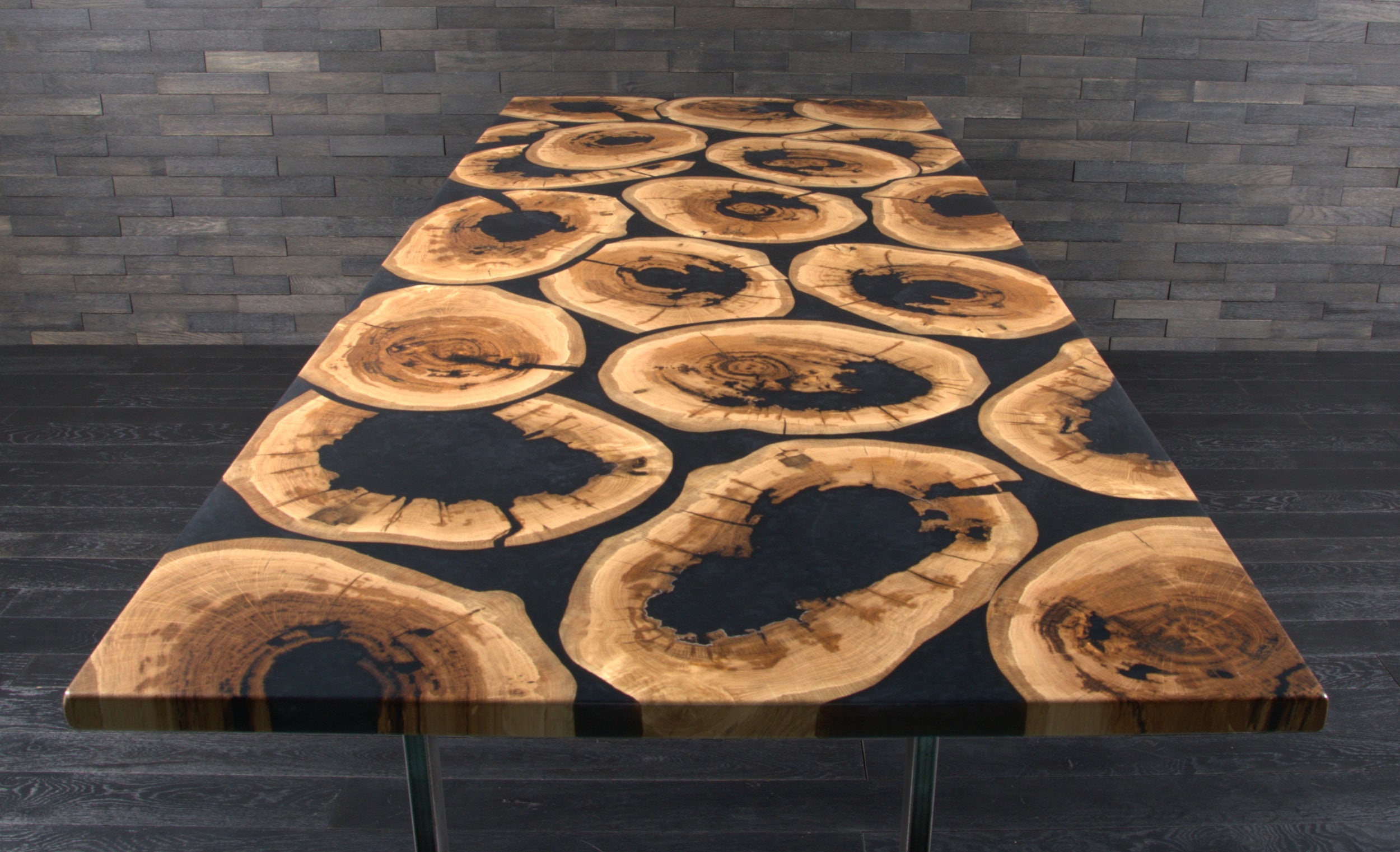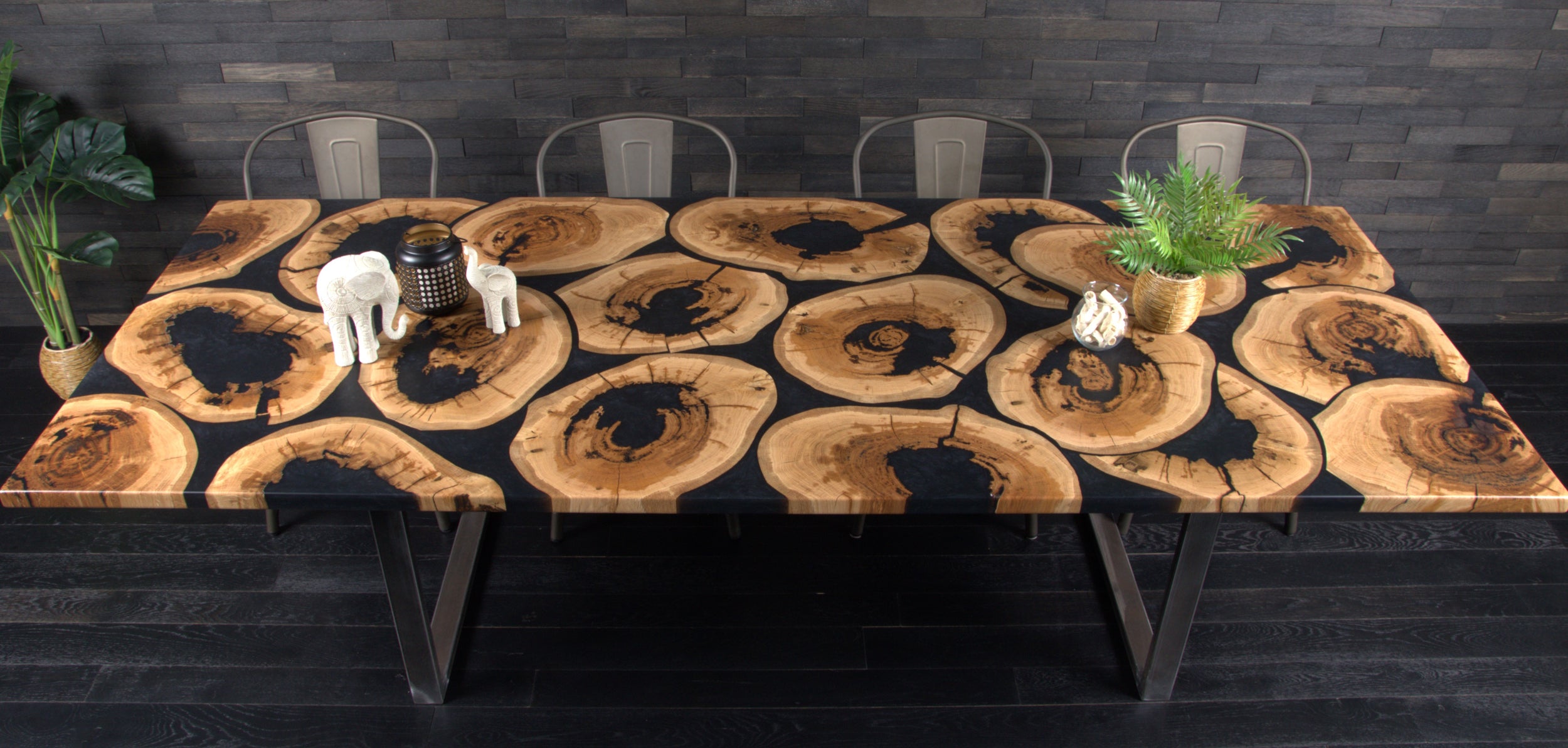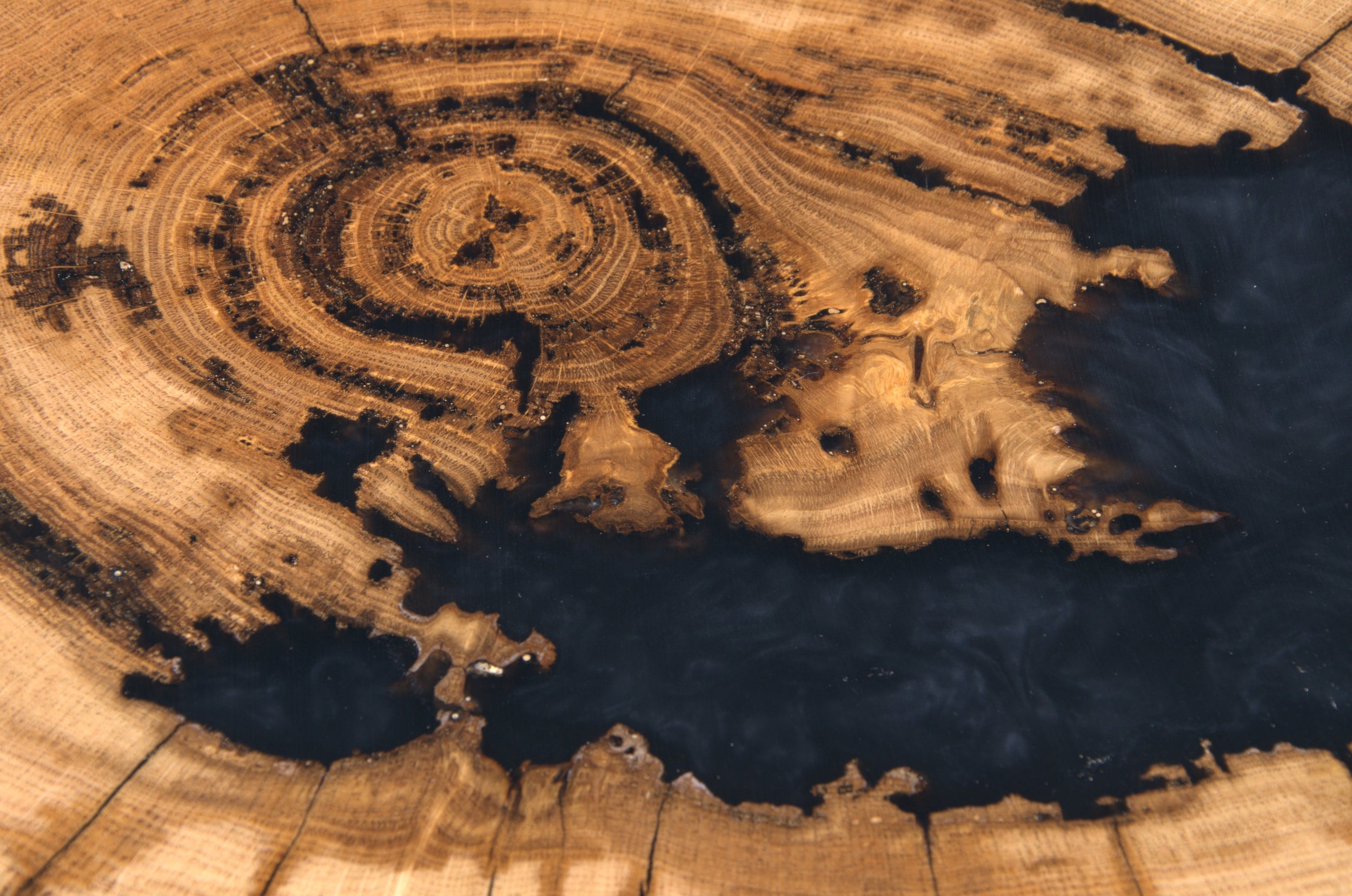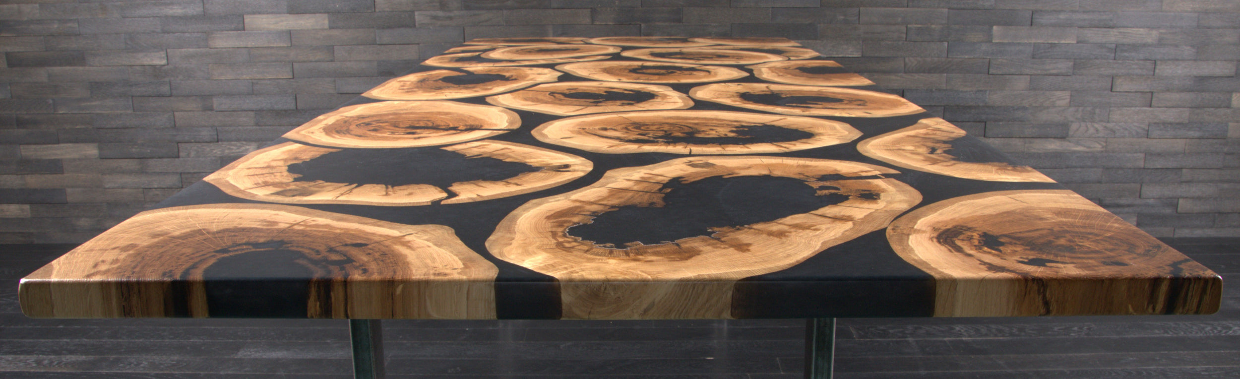 Plateau chêne massif tranche 2500x1000mm résine wetasphalt (A099)