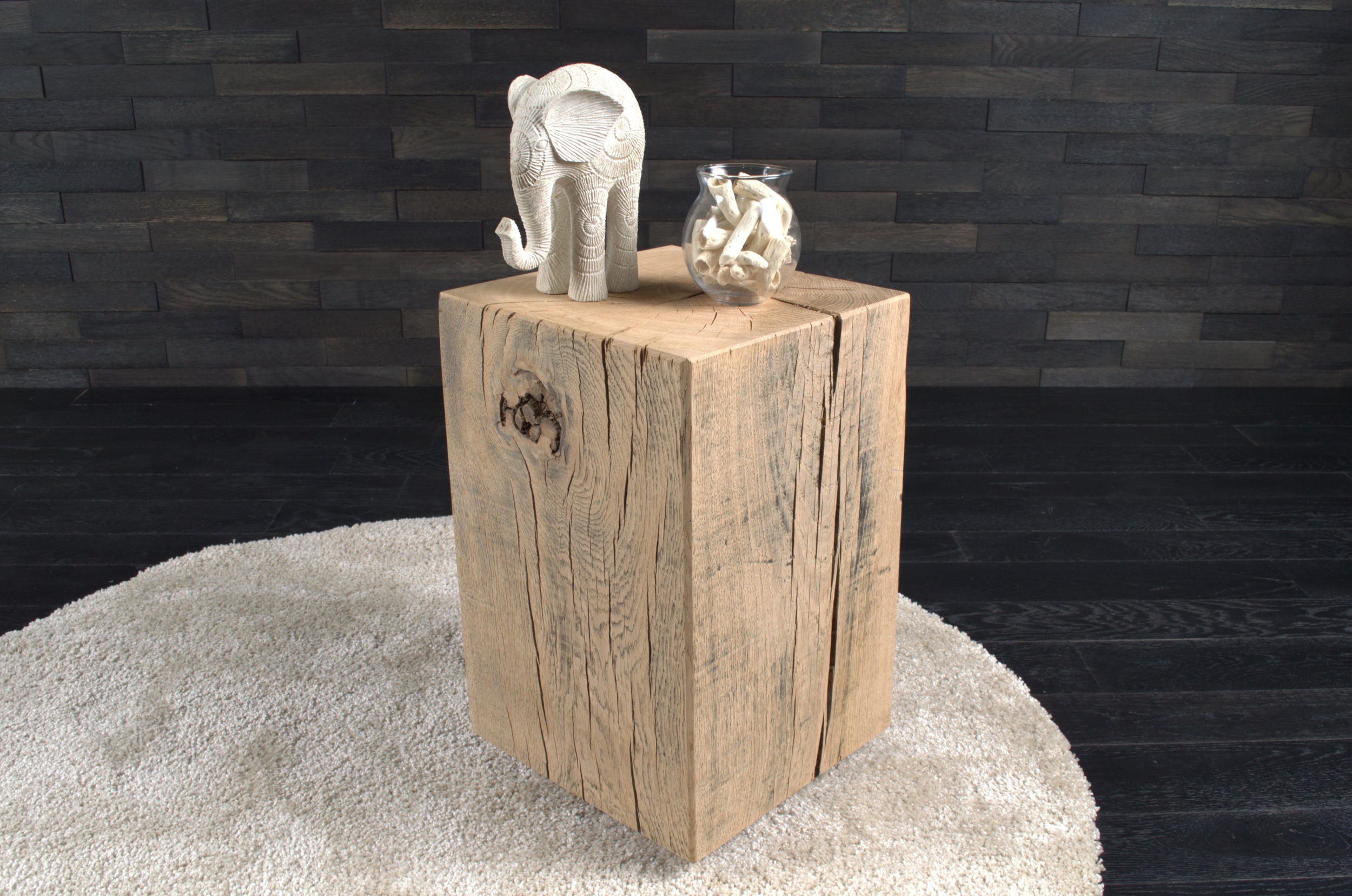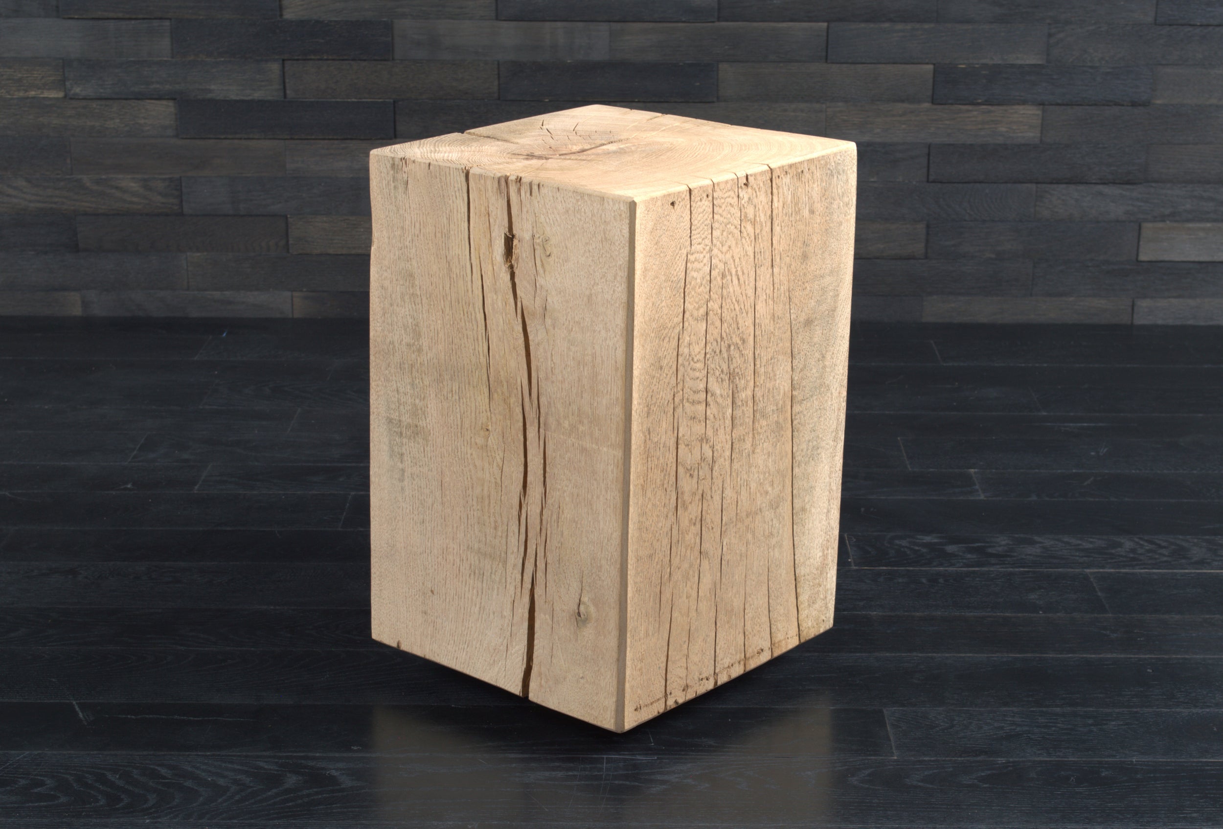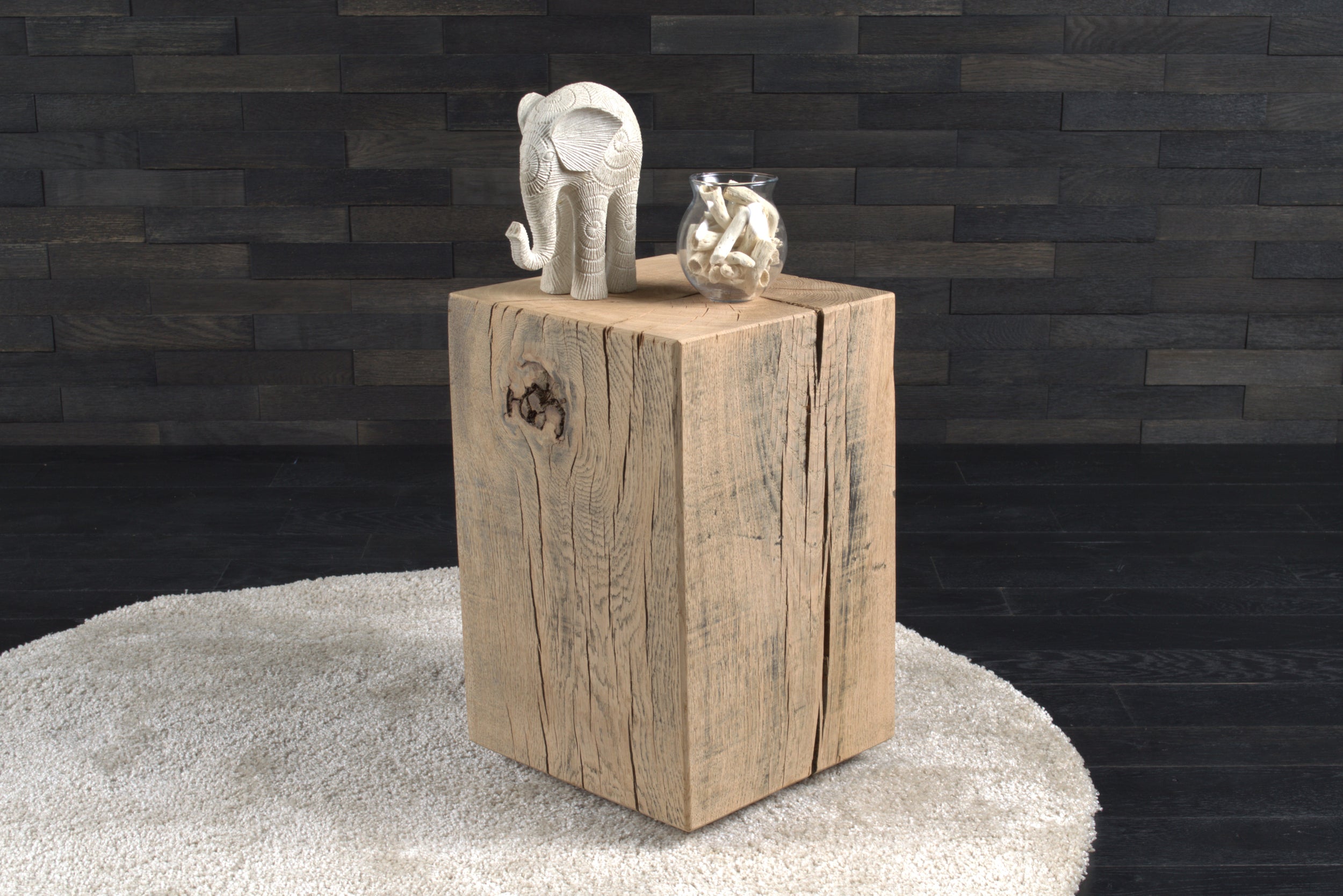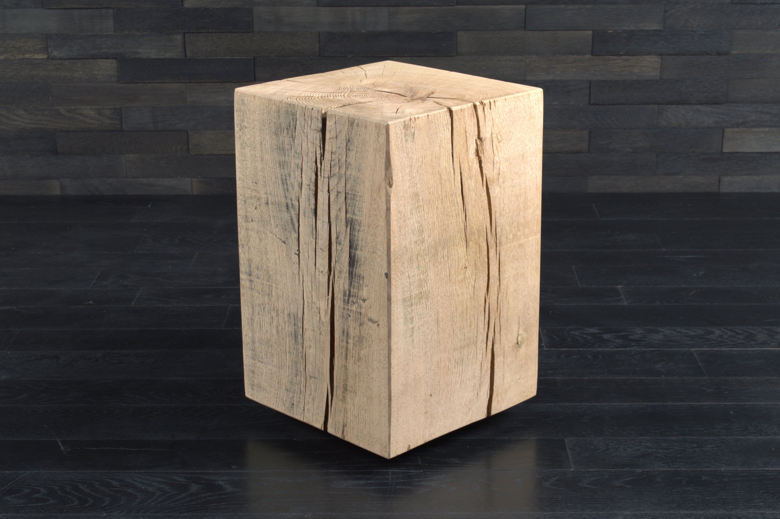 Conçu en chêne massif, chaque bloc présente un veinage unique, avec nœuds et fissures naturelles qui soulignent l’authenticité du matériau. Son format (300 x 300 mm, hauteur 450 mm) s’intègre facilement dans tous les espaces.