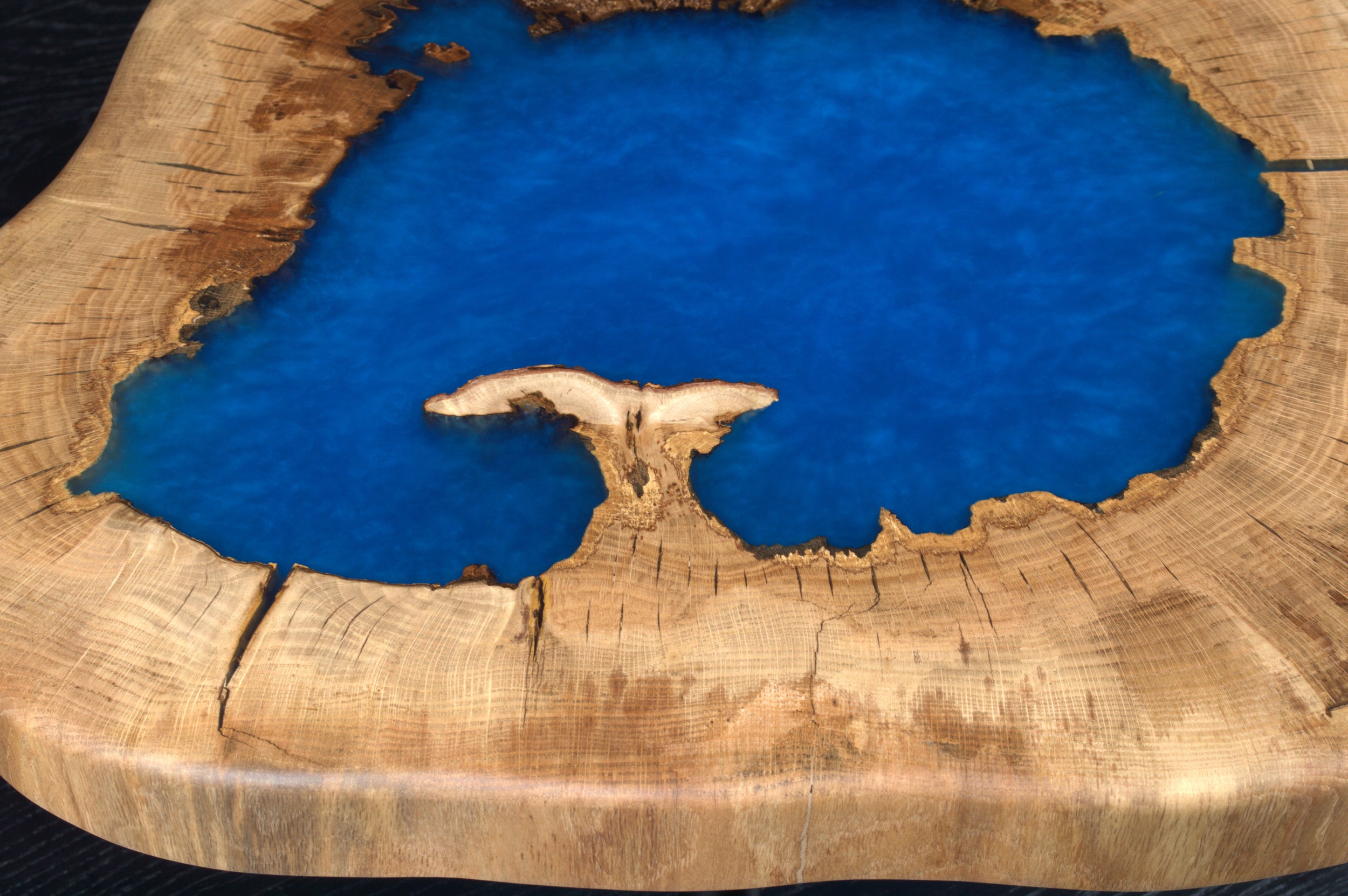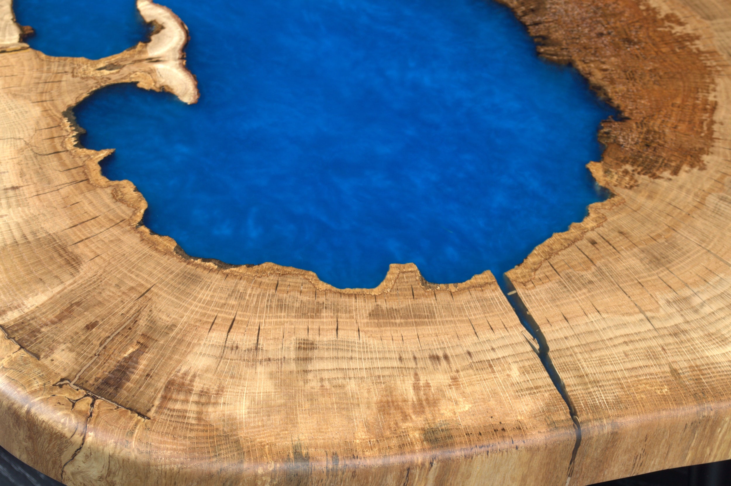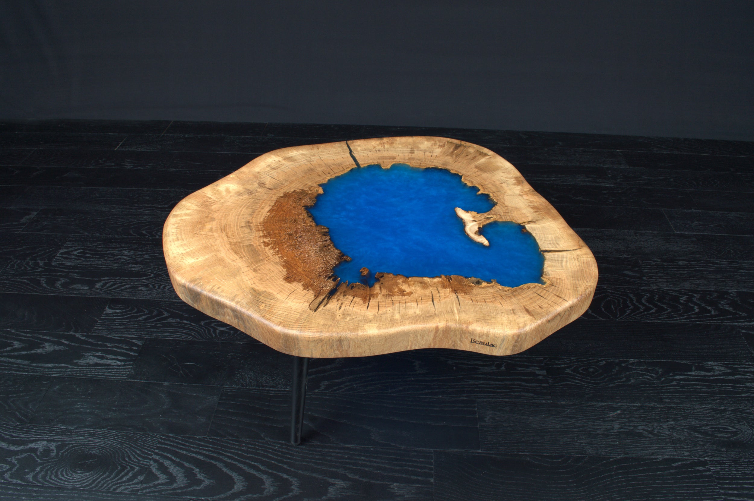 Table basse chêne " Tronc " résine sky blue (A053)