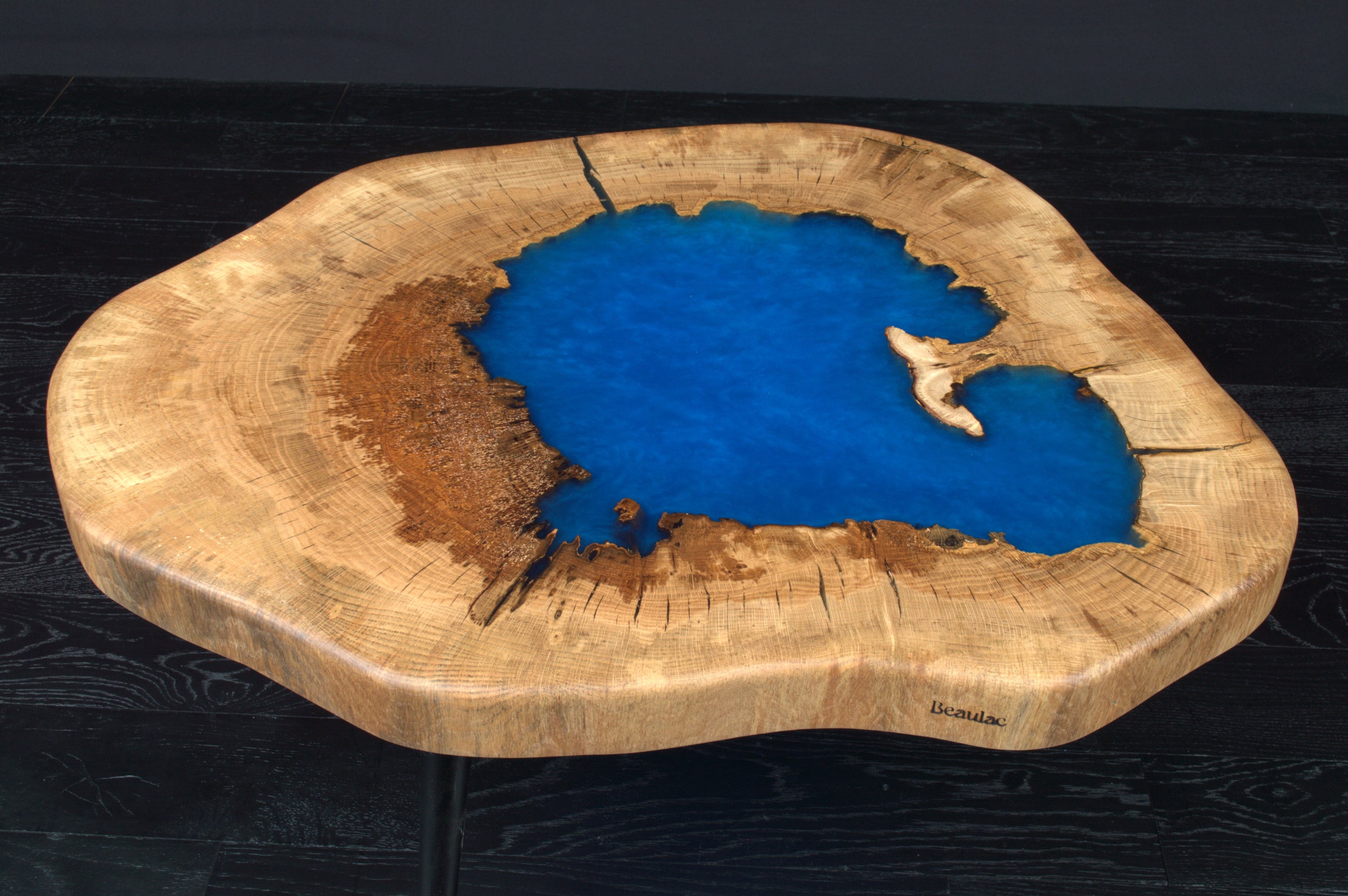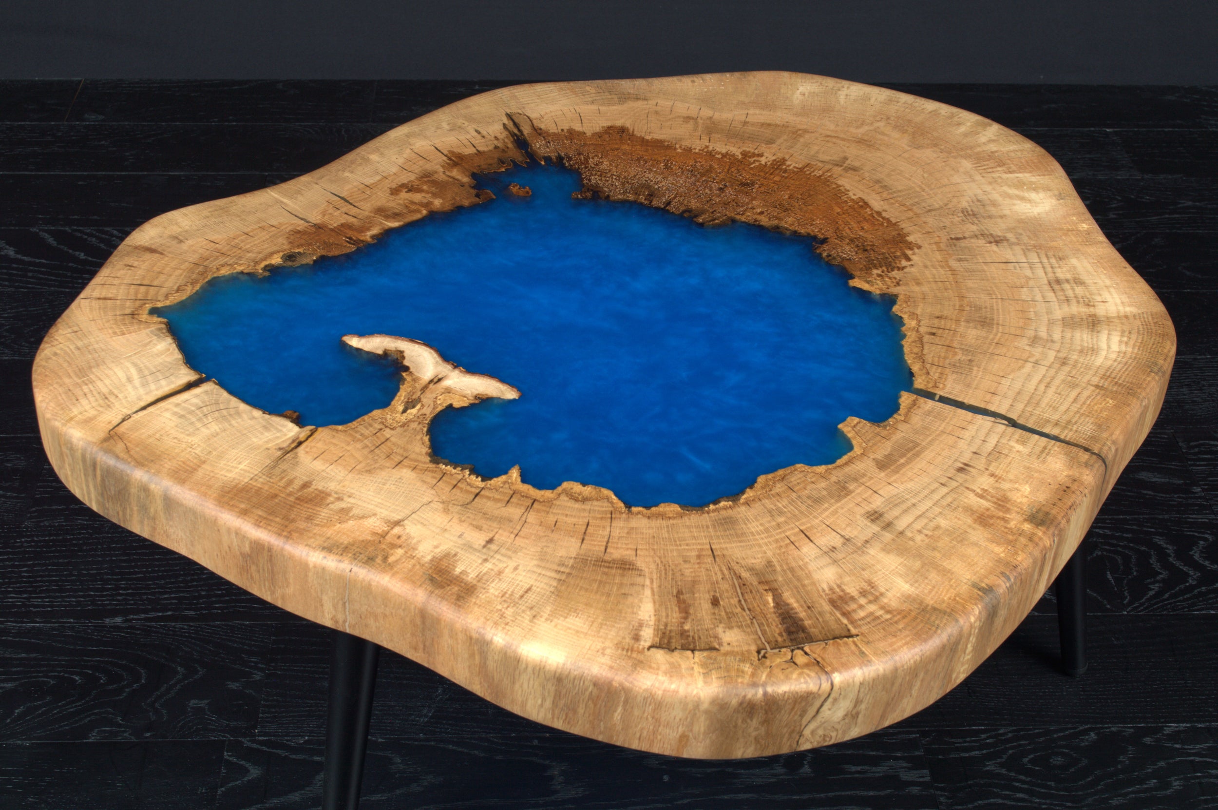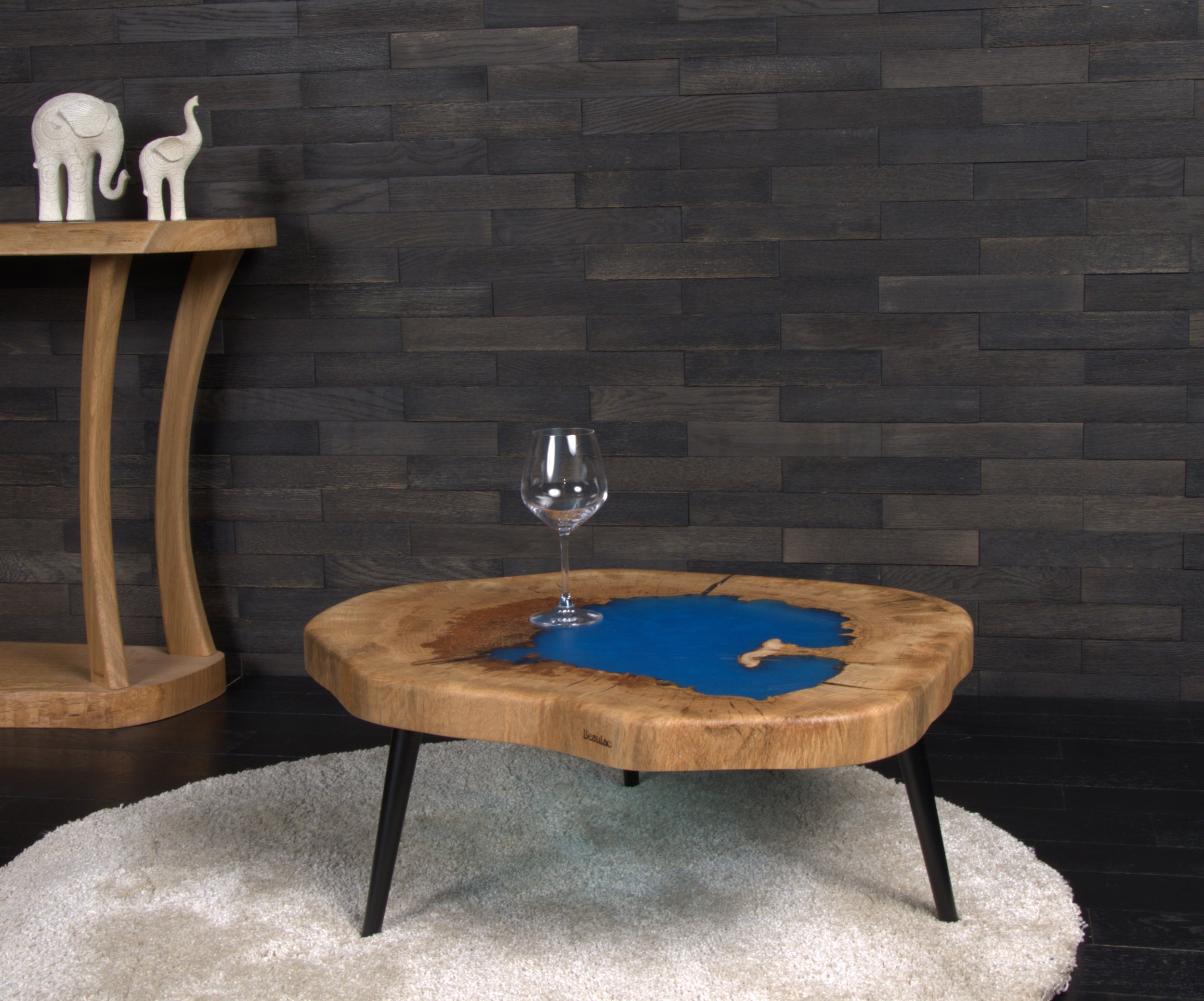 Table basse chêne " Tronc " résine sky blue (A053)