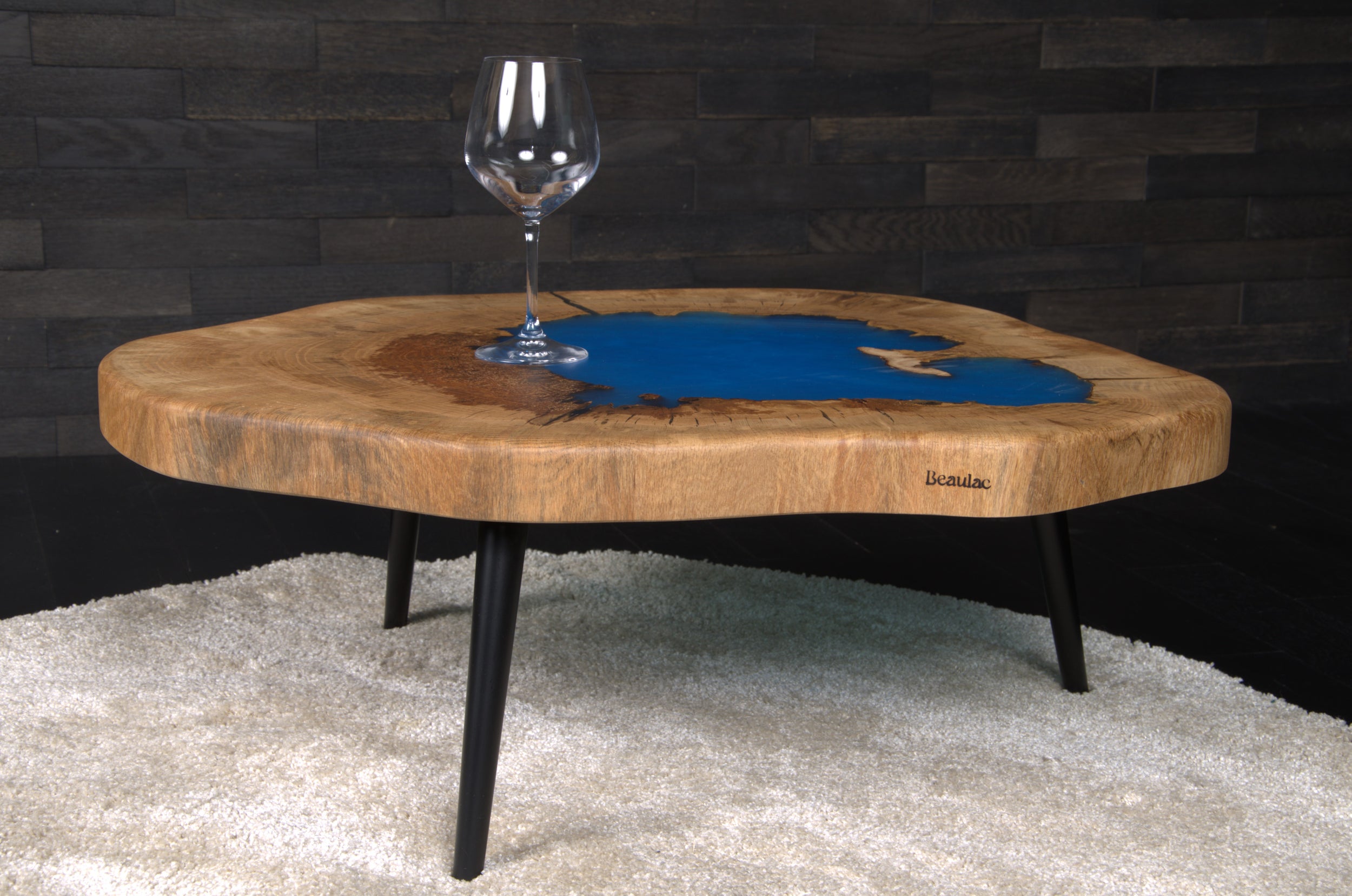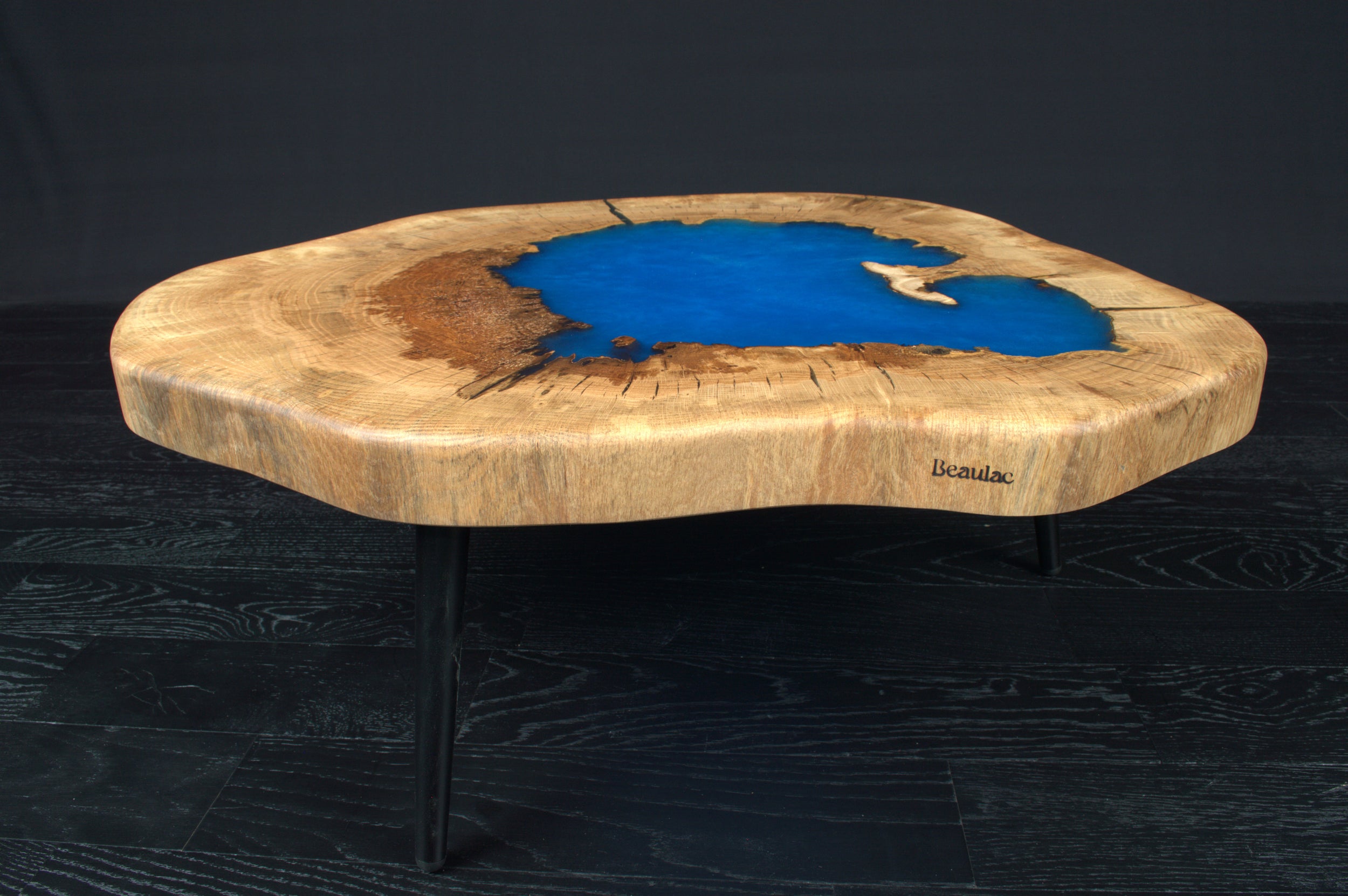 Table basse "Rivière" chêne & résine Deepsea 1000X600mm vernis brillant N°A132
