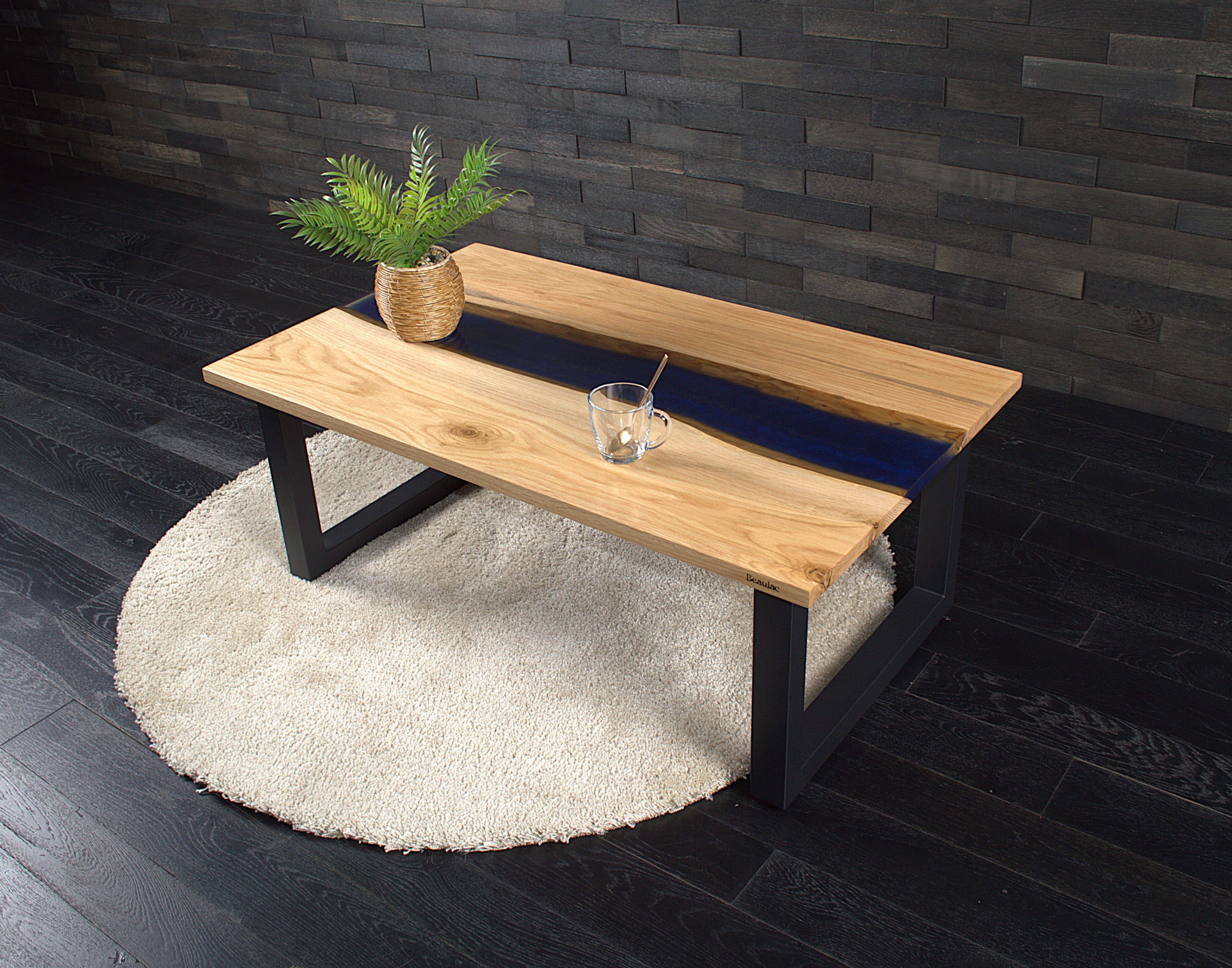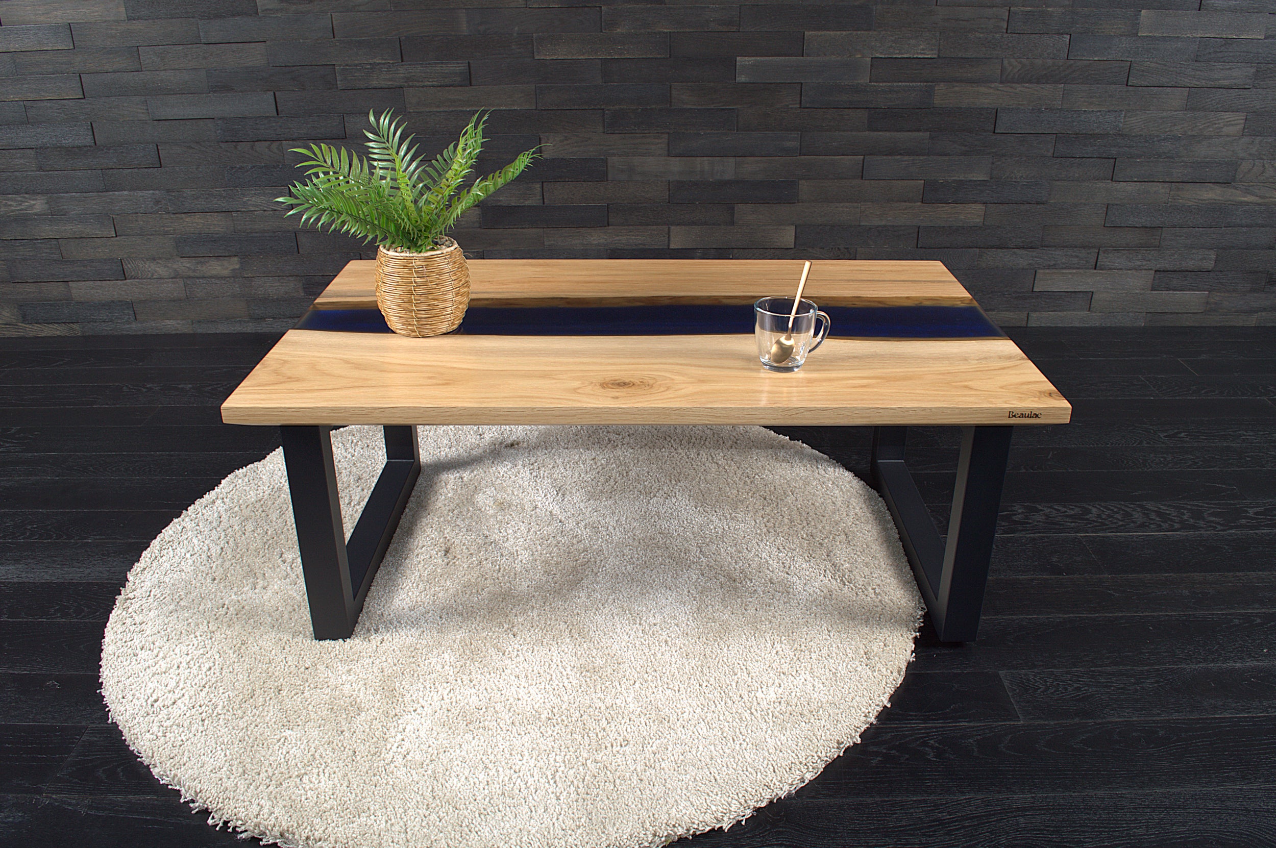 Table basse "Rivière" chêne & résine Deepsea 1000X600mm vernis brillant N°A132