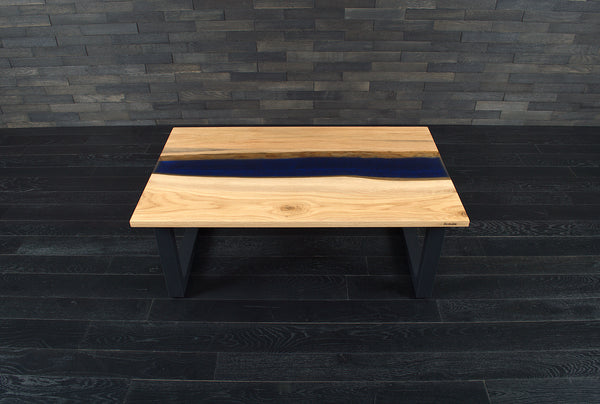 Table basse " Eliott " chêne vernis résine Marine bleue 1130X600mm N°A064